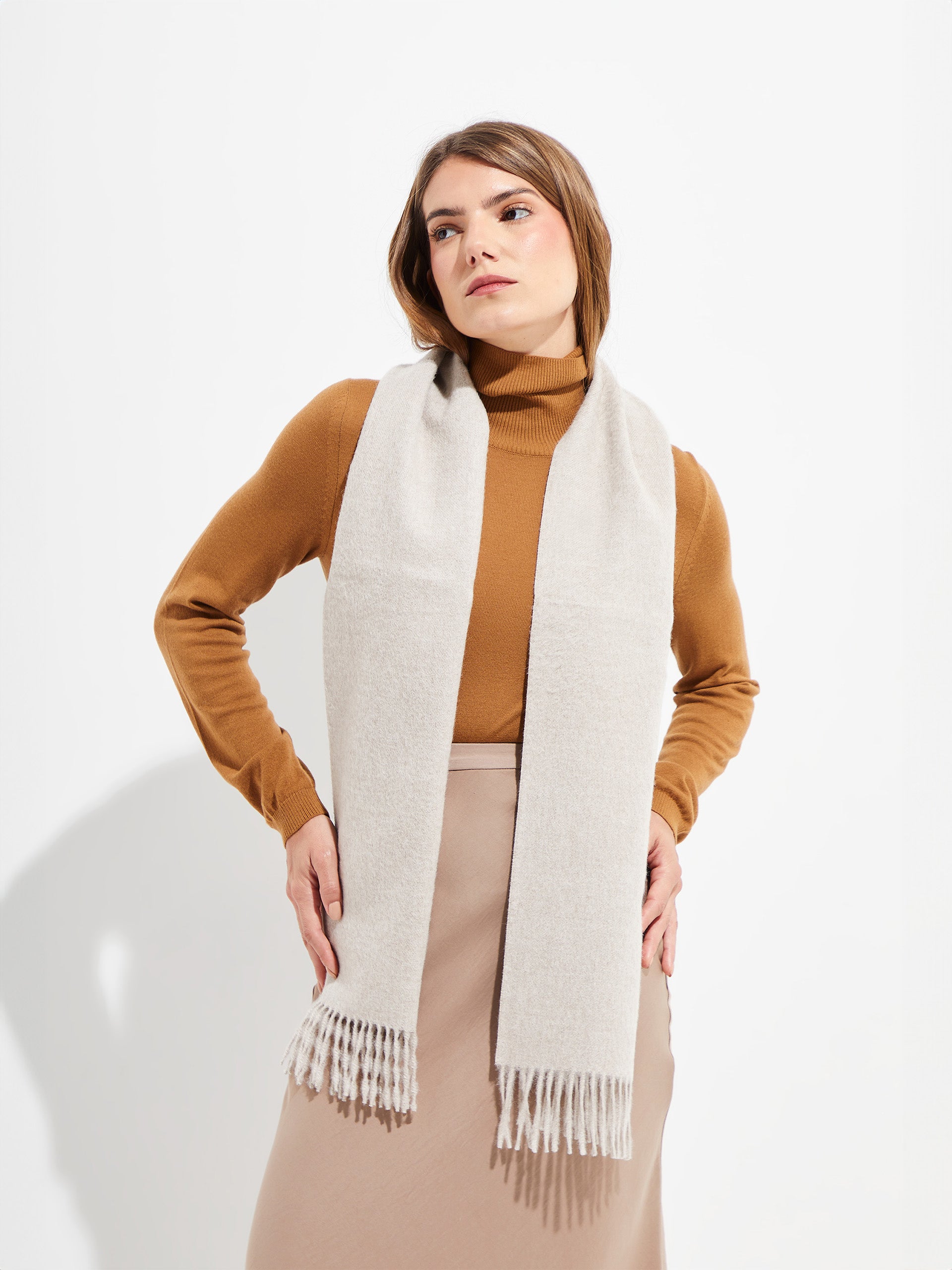 Fascinating scarf made entirely of natural royal alpaca fiber. This exclusive accessory is available in elegant shades that add distinction to any look. Its softness and quality make it an essential piece to enhance your style, perfect for any occasion and to complement your wardrobe with a touch of sophistication. | Predominant material: ROYAL ALPACA