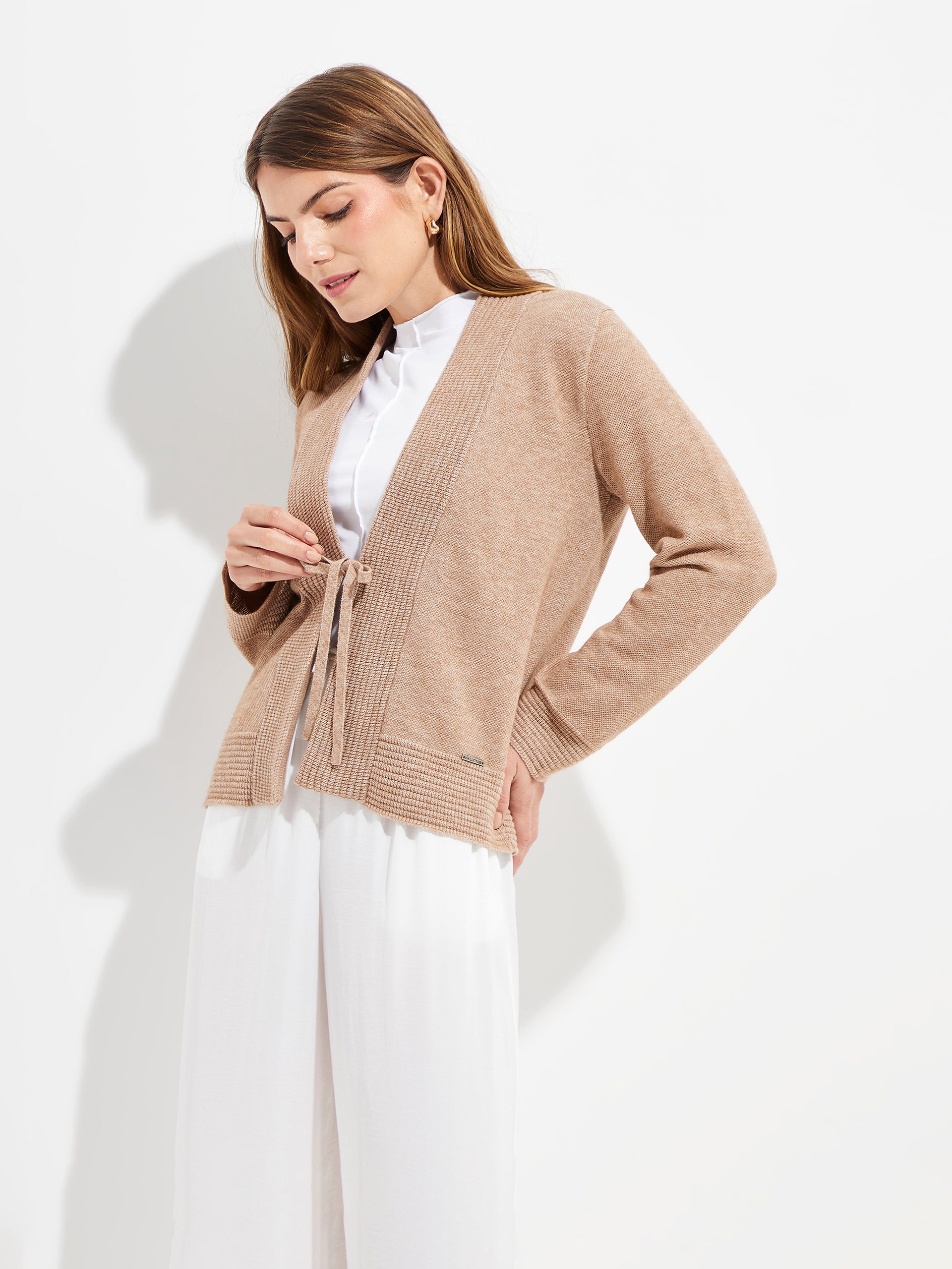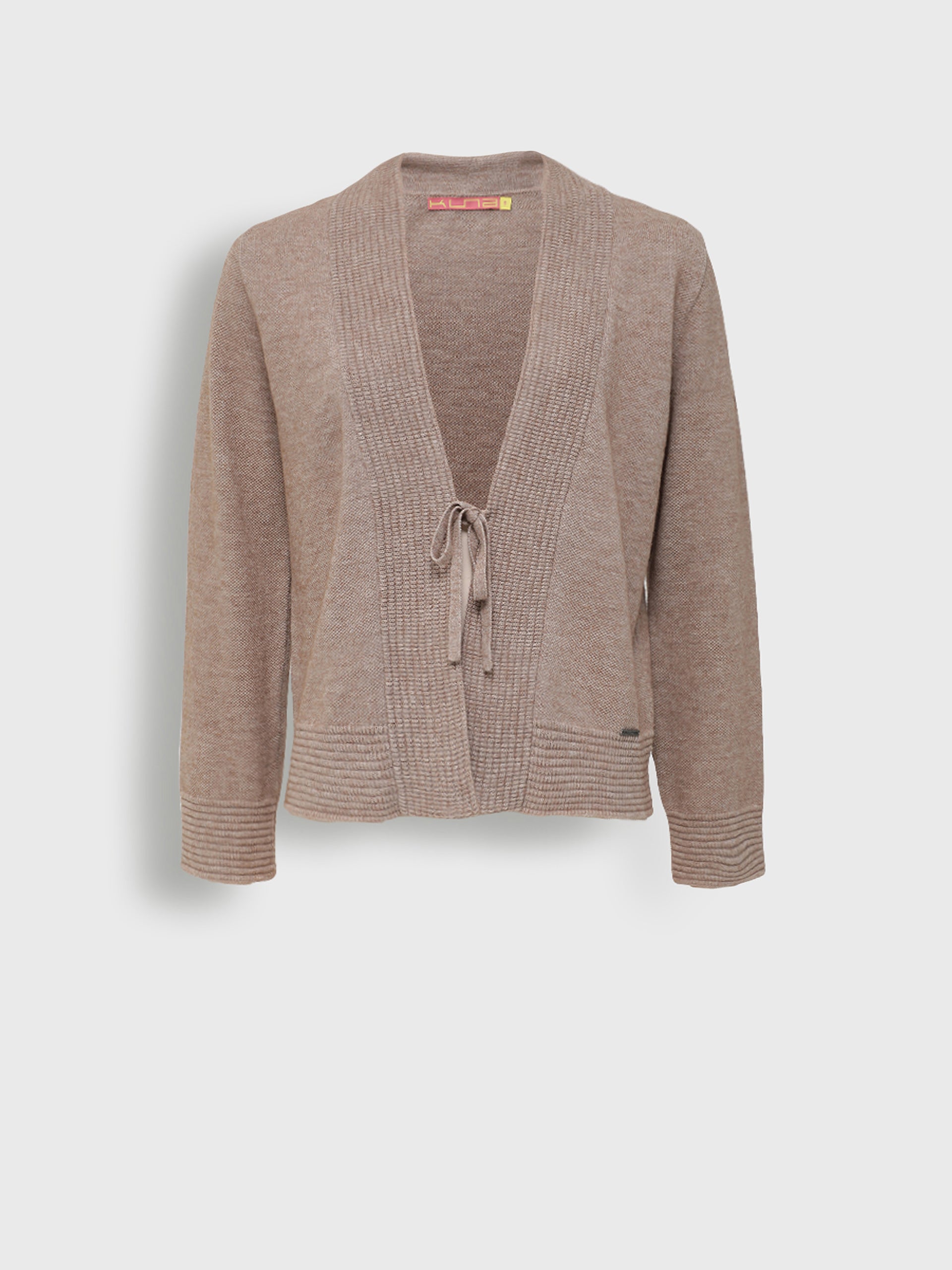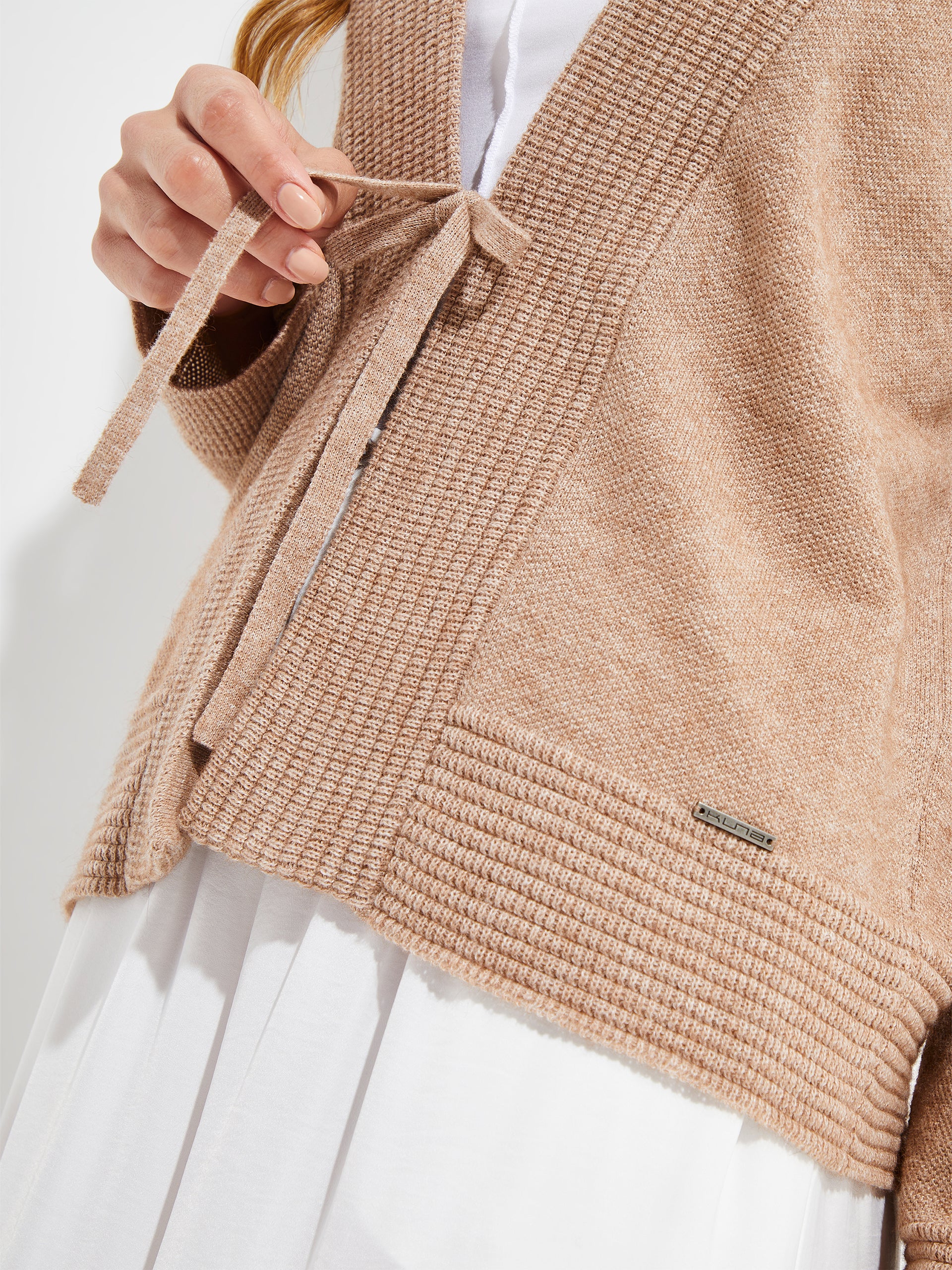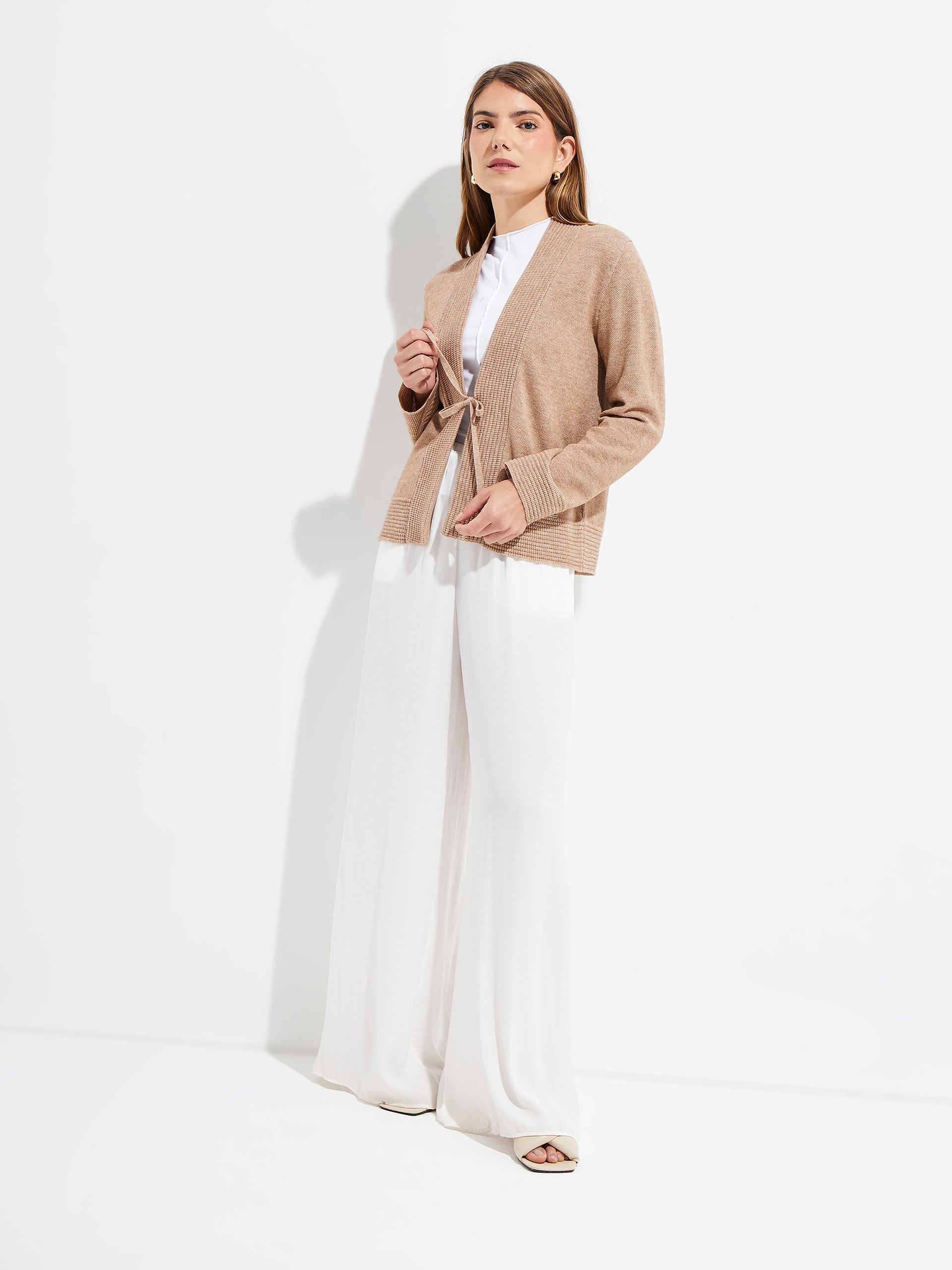Available in two of the collection's signature colors, the Yalika cardigan is crafted from a blend of organic cotton and baby alpaca. It features a combination of reverse half-English and jersey stitch detailing at the waistband and collar. It also features two woven bows at the center, adding a distinctive touch. | Predominant material: Cotton