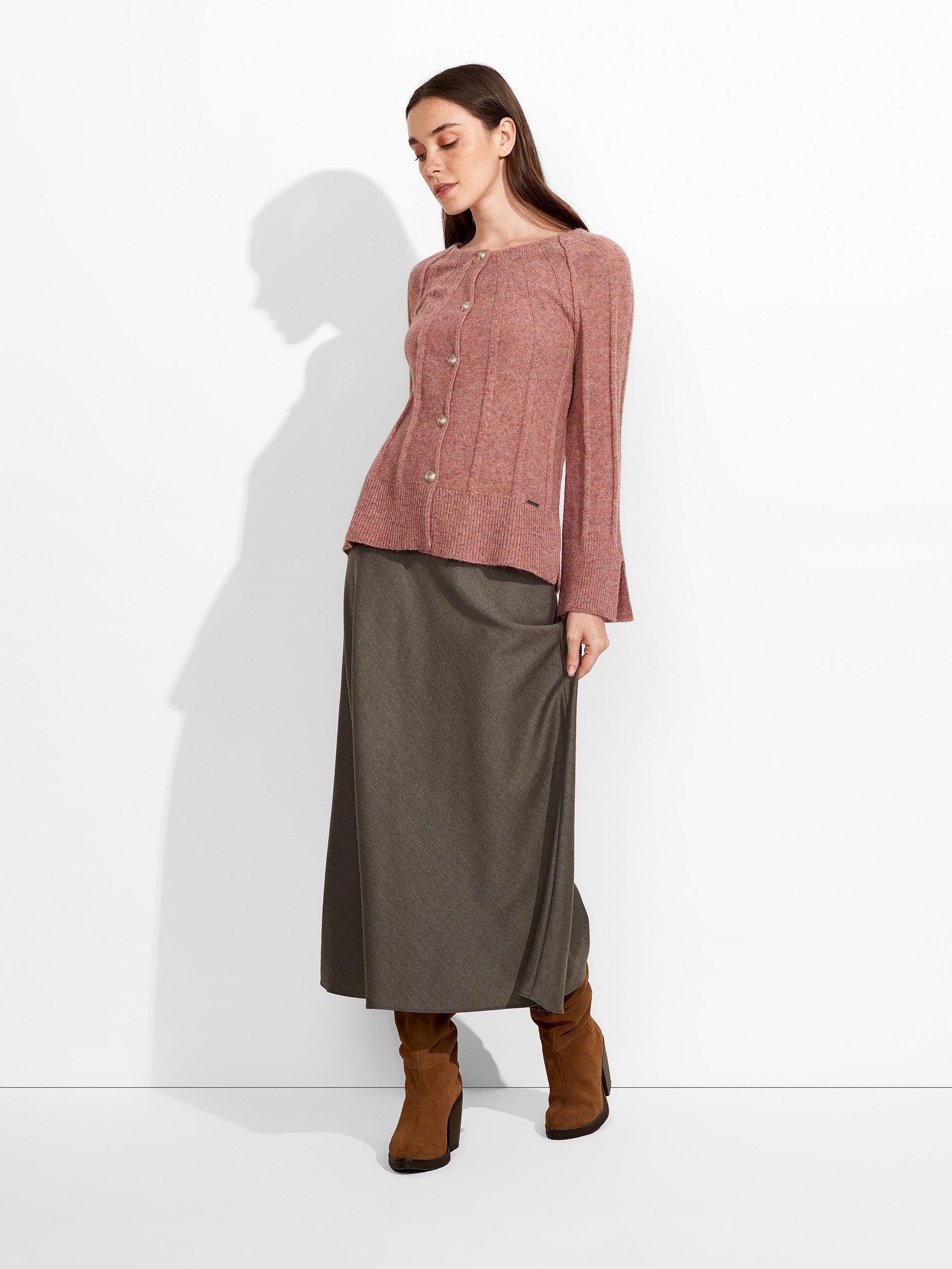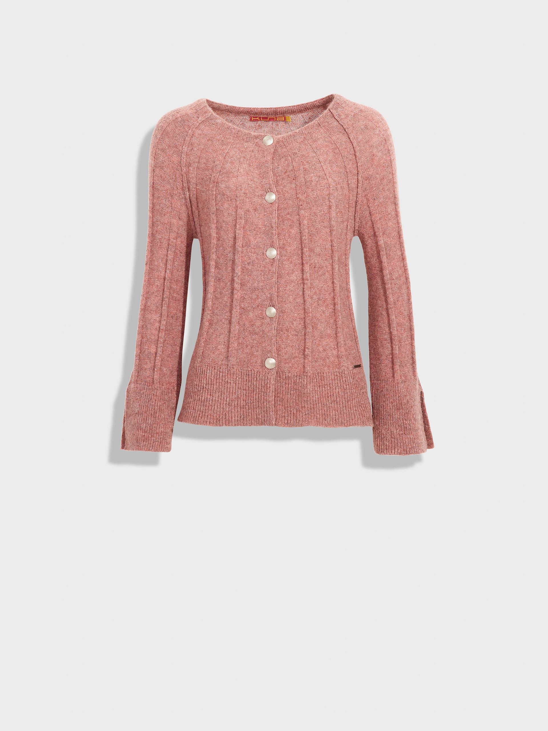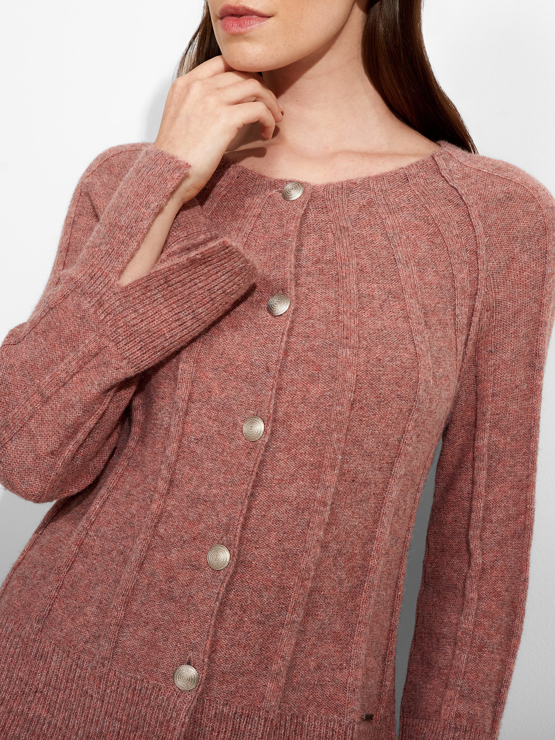 Cárdigan Zephir en tonalidad rosado, diseñado con cuello redondo y botones metálicos. Confeccionado en baby alpaca, brinda calidez y suavidad. | Material predominante: Baby Alpaca