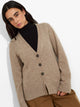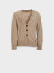 Cárdigan Zia en tonalidad marrón, de corte clásico con botones, escote en "V". Confeccionado en baby alpaca, brinda calidez y suavidad. | Material predominante: Baby Alpaca