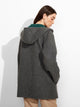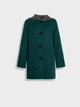 Abrigo Alaia en tonalidad verde, presenta una silueta envolvente con capucha, botones de poliester tipo cacho y bolsillos de parche frontales. Su diseño reversible lo hace versátil. Confeccionado en una mezcla de baby alpaca y lana. | Material predominante: Baby Alpaca