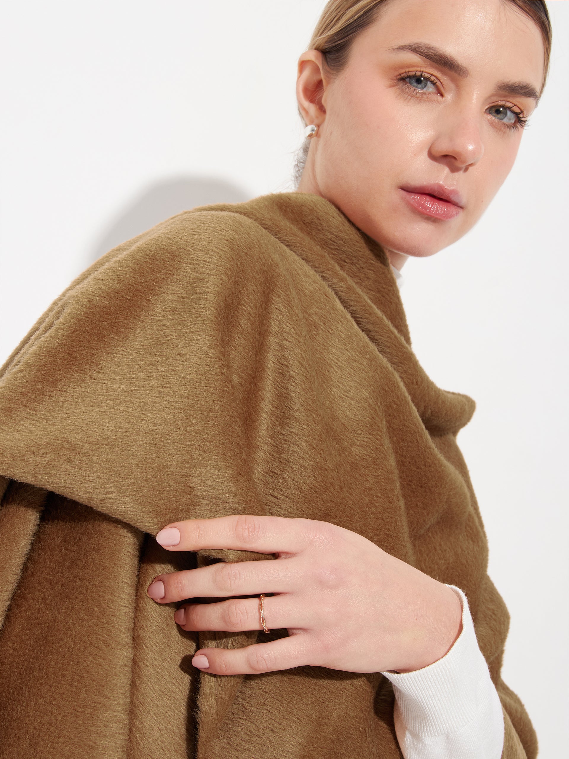 La capa Gil es una obra maestra de comodidad y elegancia, donde las más suaves fibras de alpaca suri y lana se unen para crear una prenda excepcional. Esta sofisticada capa no solo te mantendrá cálida, sino que también te envolverá en una experiencia de lujo sin igual. | Material predominante: Baby Alpaca