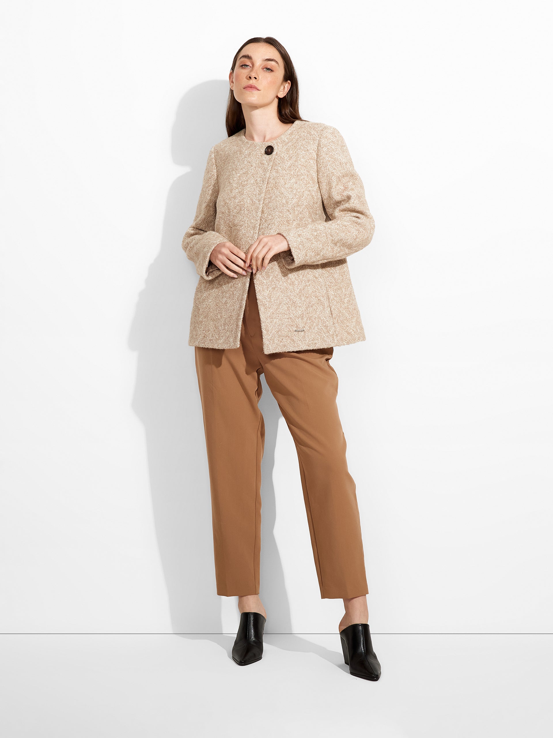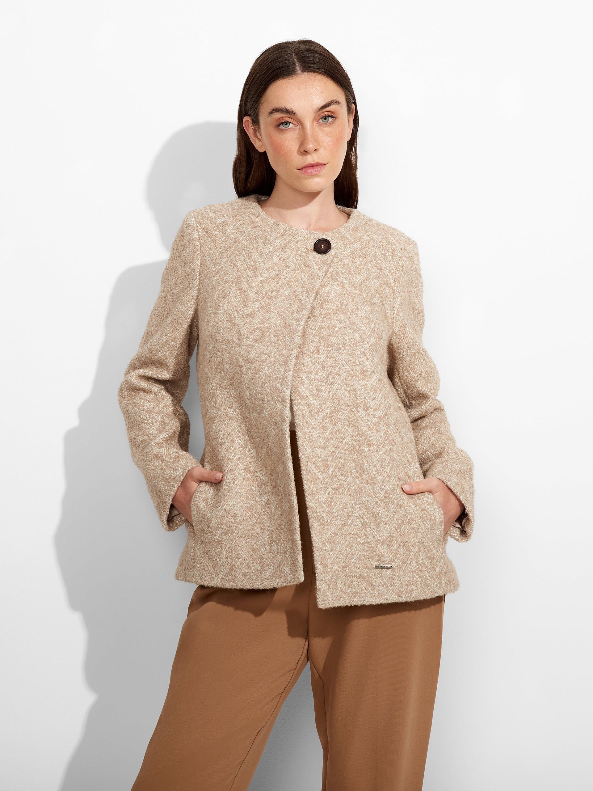 Saco Zigzag en tonalidad beige, de corte regular fit con bolsillos insertados en las costuras. Elaborado en tela chevron, con forro interno para mayor confort. Confeccionado en una mezcla de baby alpaca, alpaca, seda y lana. | Material predominante: Baby Alpaca