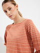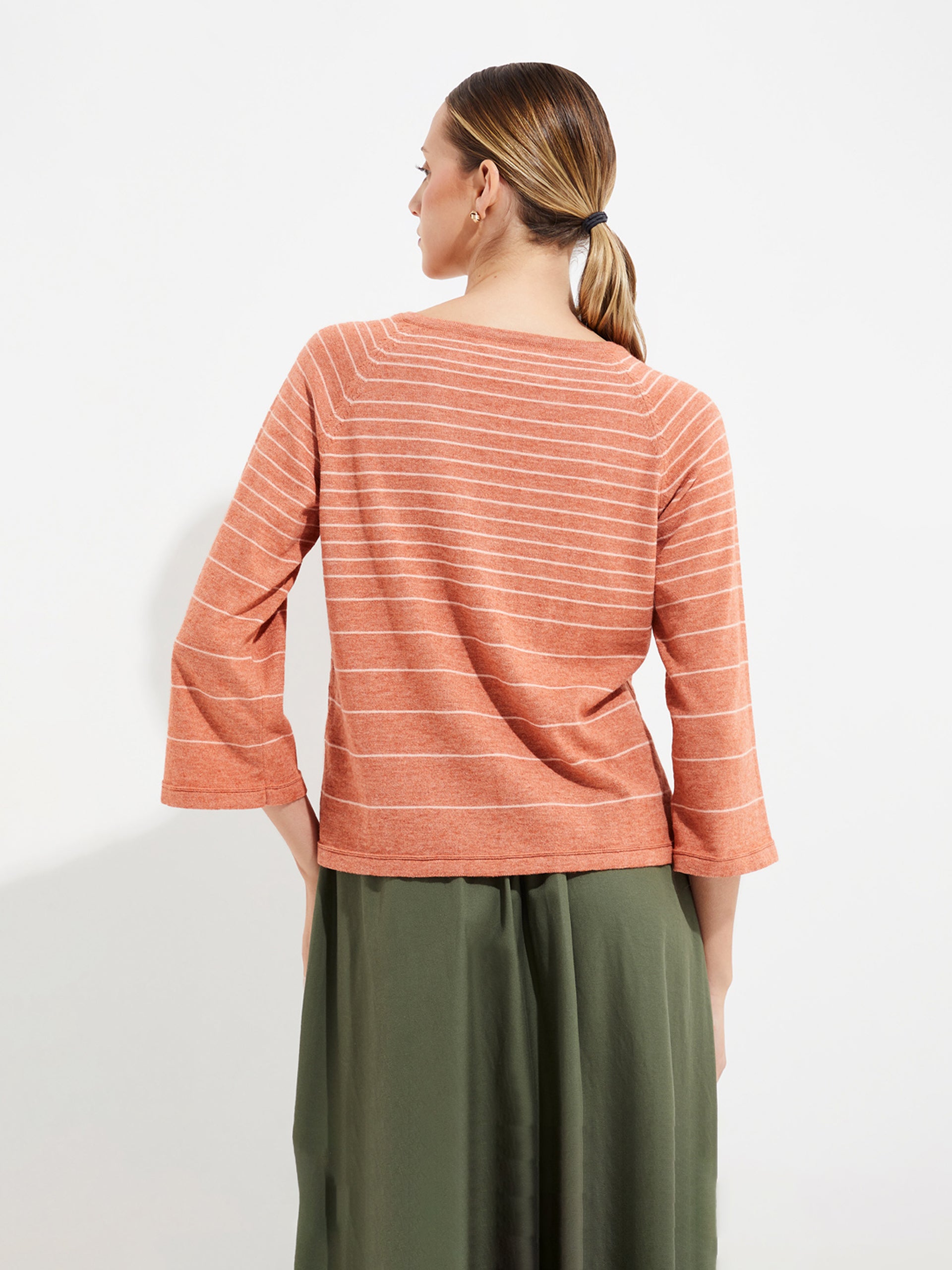 Our Yackelina jersey knit sweater blends organic cotton and baby alpaca for extra softness. It features a square neck, 3/4 sleeves and an oversized style. Its horizontal striped design adds a modern touch. Available in two shades. | Predominant material: Cotton