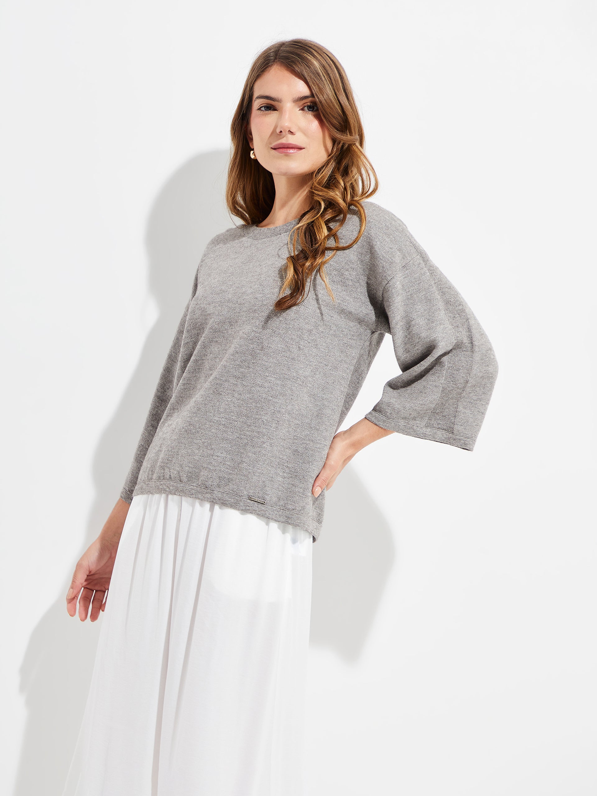 The Yolene sweater is the perfect casual piece for this season. Made from organic cotton and baby alpaca, this three-quarter sleeve sweater combines comfort and style. Available in three basic shades, it features a semi-round neck and an oversized design that gives it a relaxed look. | Predominant material: Cotton