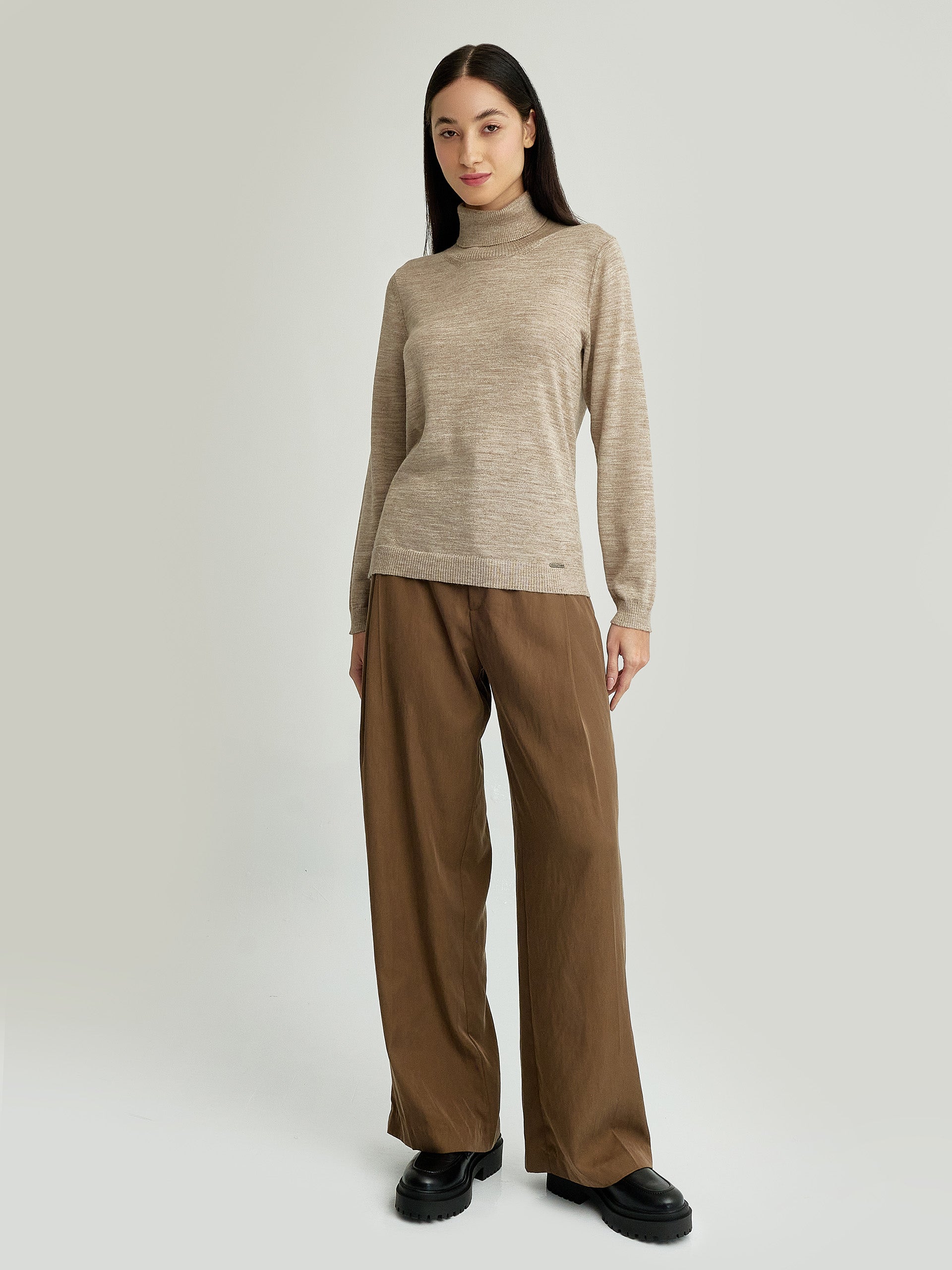Nothing like a baby alpaca sweater to enjoy the winter. Feel the warmth and softness of the Ysola sweater made with baby alpaca yarn and silk. Our turtleneck sweater, relaxed silhouette and solid color will be the ideal garment for casual outings. | Predominant material: Baby Alpaca