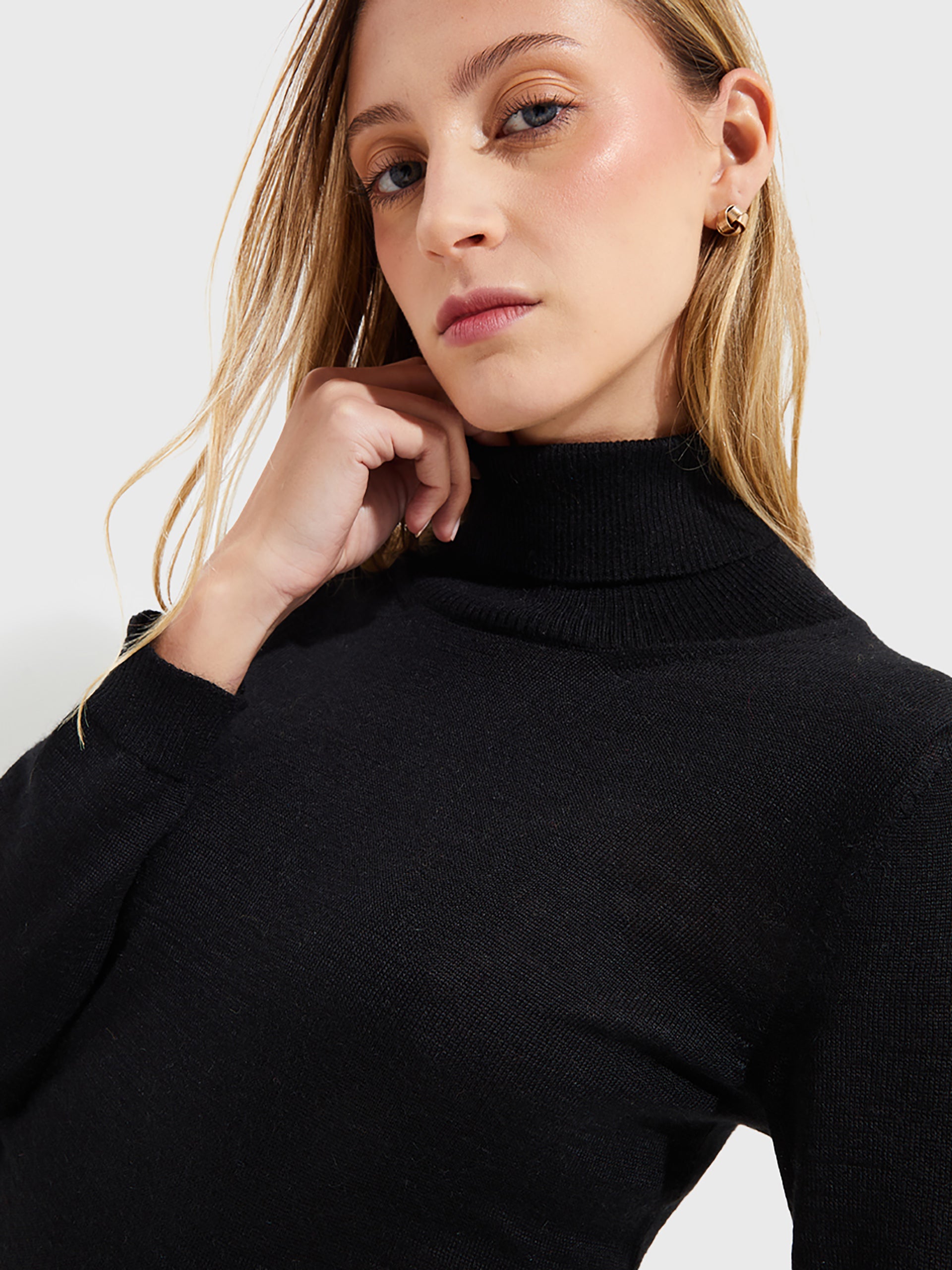 Nada como un suéter de baby alpaca para disfrutar del invierno. Siente la calidez y suavidad del suéter Ysola elaborada con hilado de baby alpaca y seda. Nuestro suéter de cuello tortuga, silueta relajada y color entero será la prenda ideal para salidas casuales. | Material predominante: Baby Alpaca