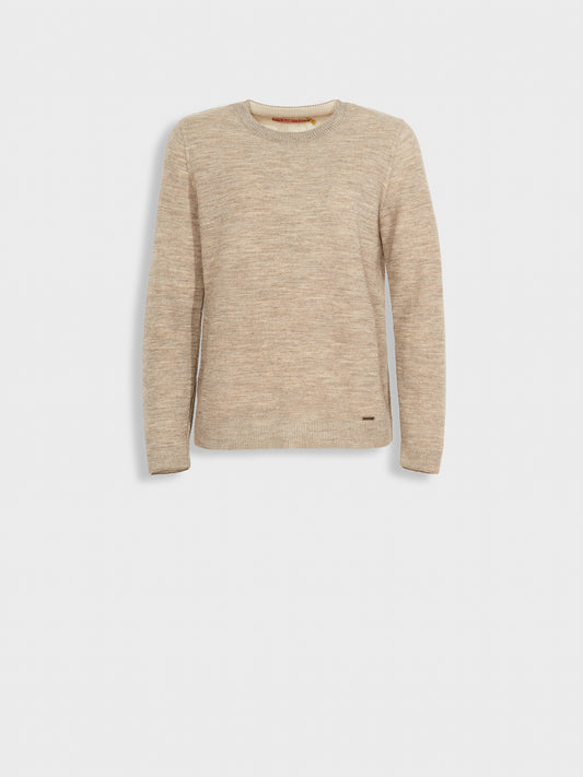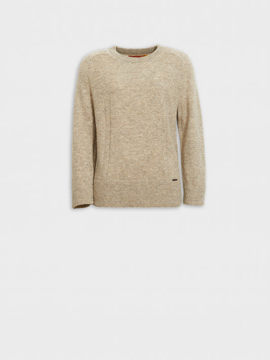 Suéter Zinal en tonalidad beige, diseñado con cuello redondo y punto estructurado. Confeccionado en baby...