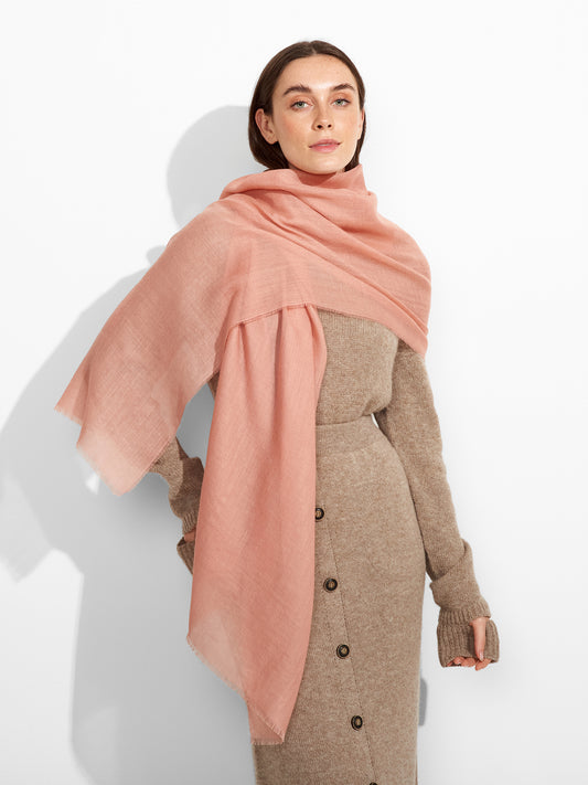 Estola Alondra en tonalidad rosado, de color entero, presenta bordes con flecos finos. Confeccionada en...