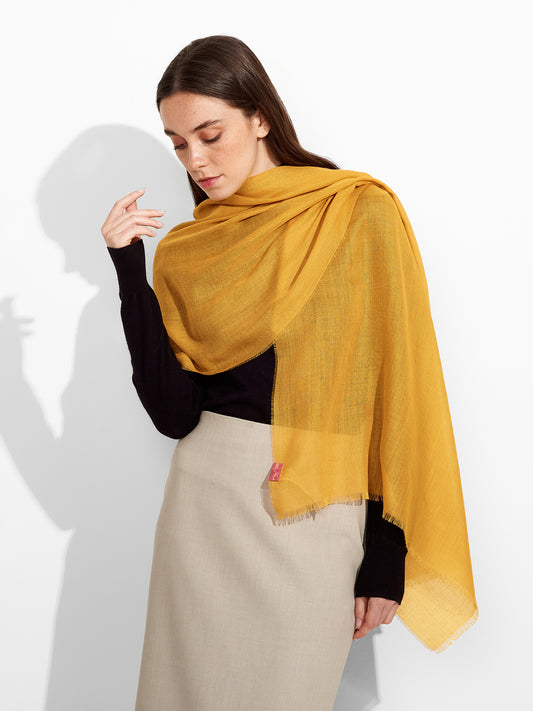Estola Alondra en tonalidad amarillo, de color entero, presenta bordes con flecos finos. Confeccionada en...