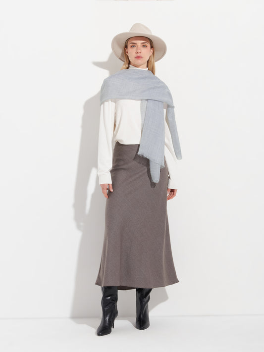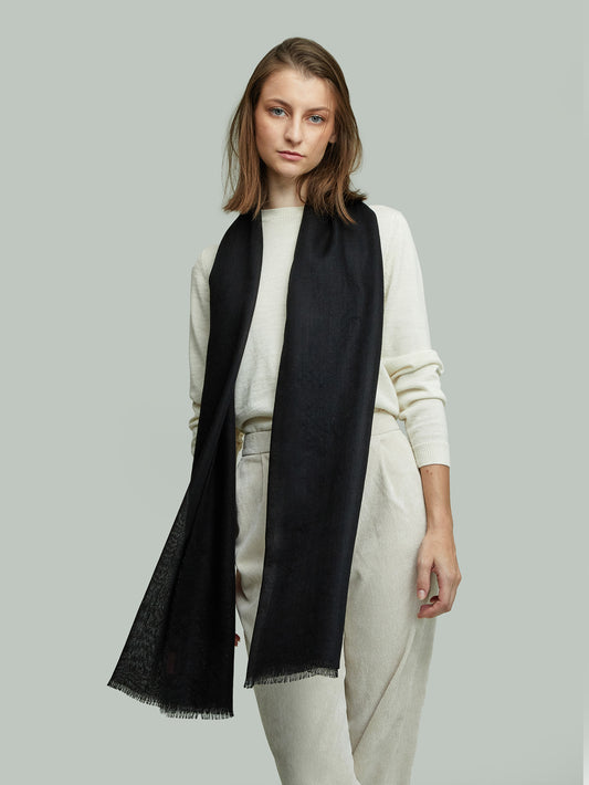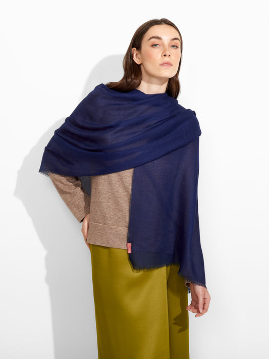 Estola Alondra en tonalidad azul, de color entero, presenta bordes con flecos finos. Confeccionada en...