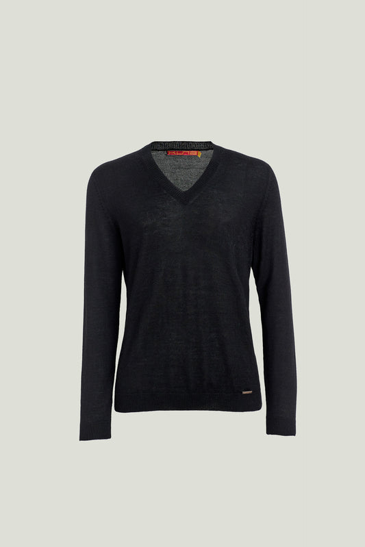 This V-neck garment is made of soft baby alpaca fibre and is available in a...