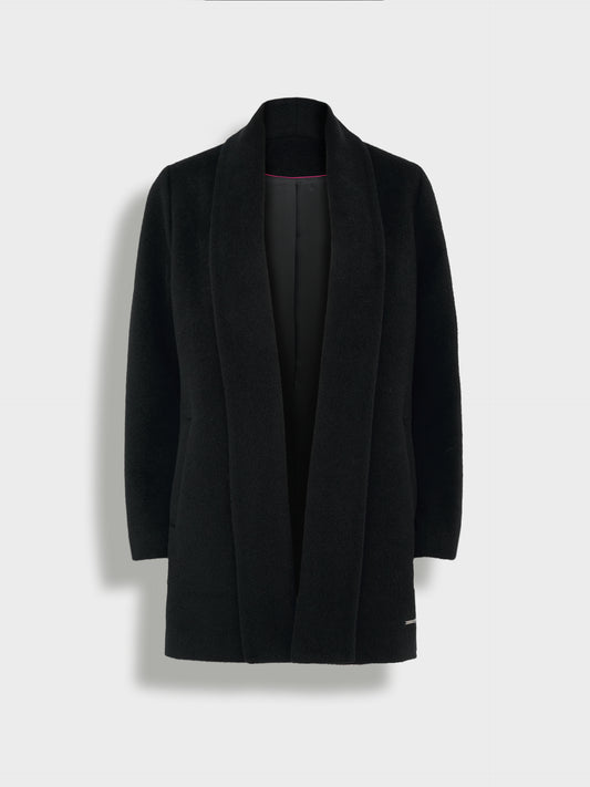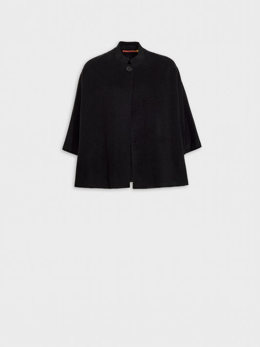 Capa Zibelin en tonalidad negro, de diseño abierto y silueta envolvente. Confeccionada en una mezcla...
