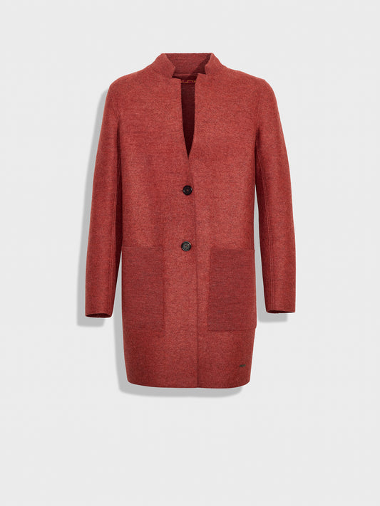 Abrigo Zybil en tonalidad rojo, destaca por su diseño sin forro y cuello mao. Presenta...