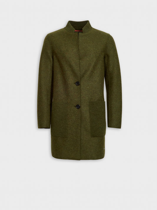 Abrigo Zybil en tonalidad verde, destaca por su diseño sin forro y cuello mao. Presenta...