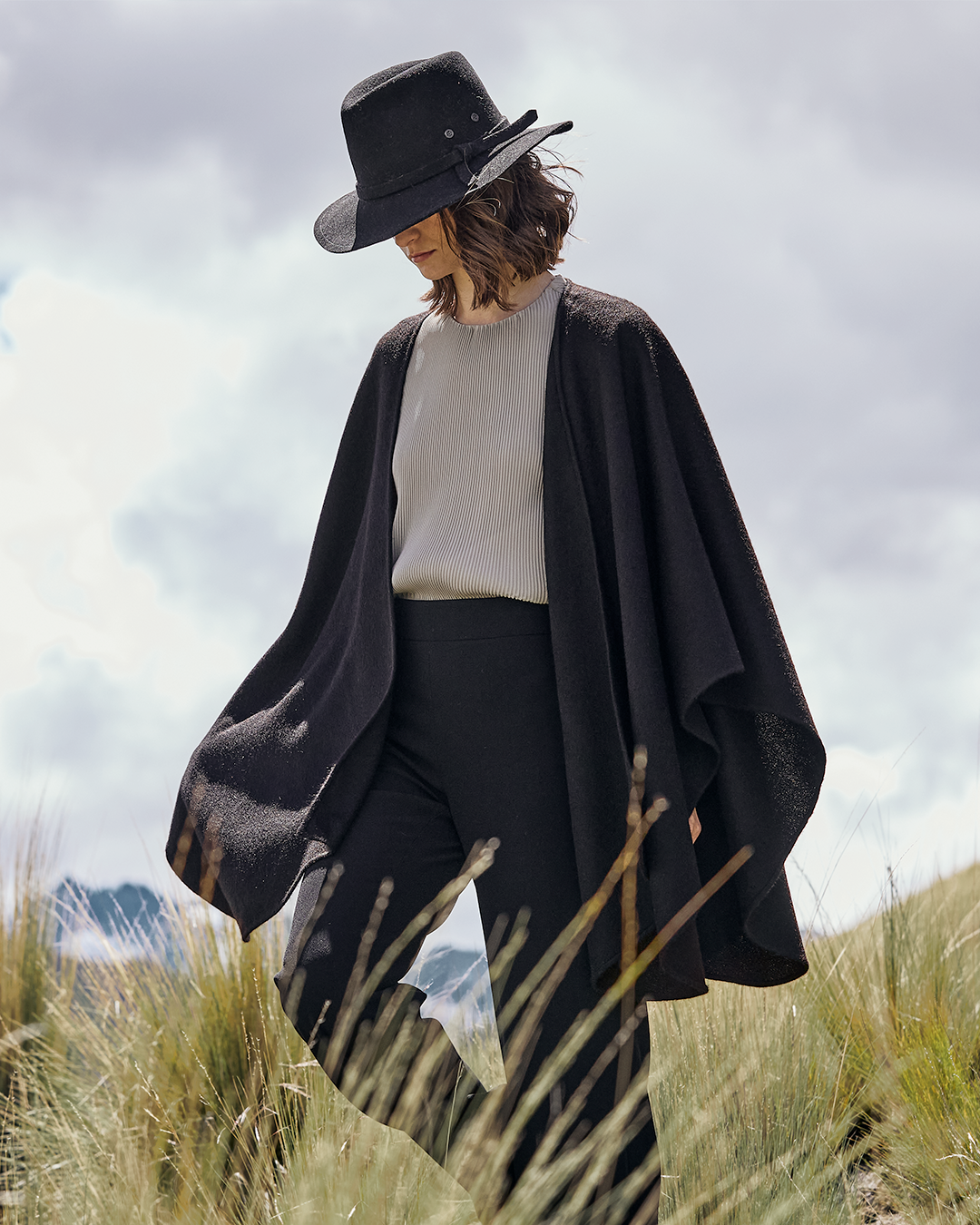 Discover nature in its purest form with KUNA’s Black Alpaka collection. Each garment is a masterpiece, woven from 100% natural black alpaca fiber, without going through dyeing processes, thus preserving the essence of the original color. This approach not only enhances the authenticity of our pieces, but also reduces the environmental impact, eliminating the need for additional chemical processes.