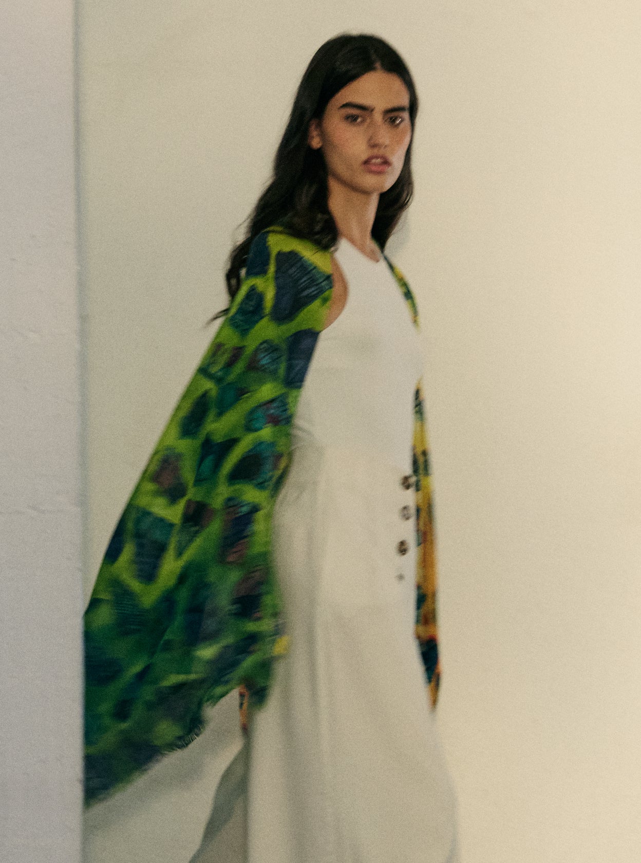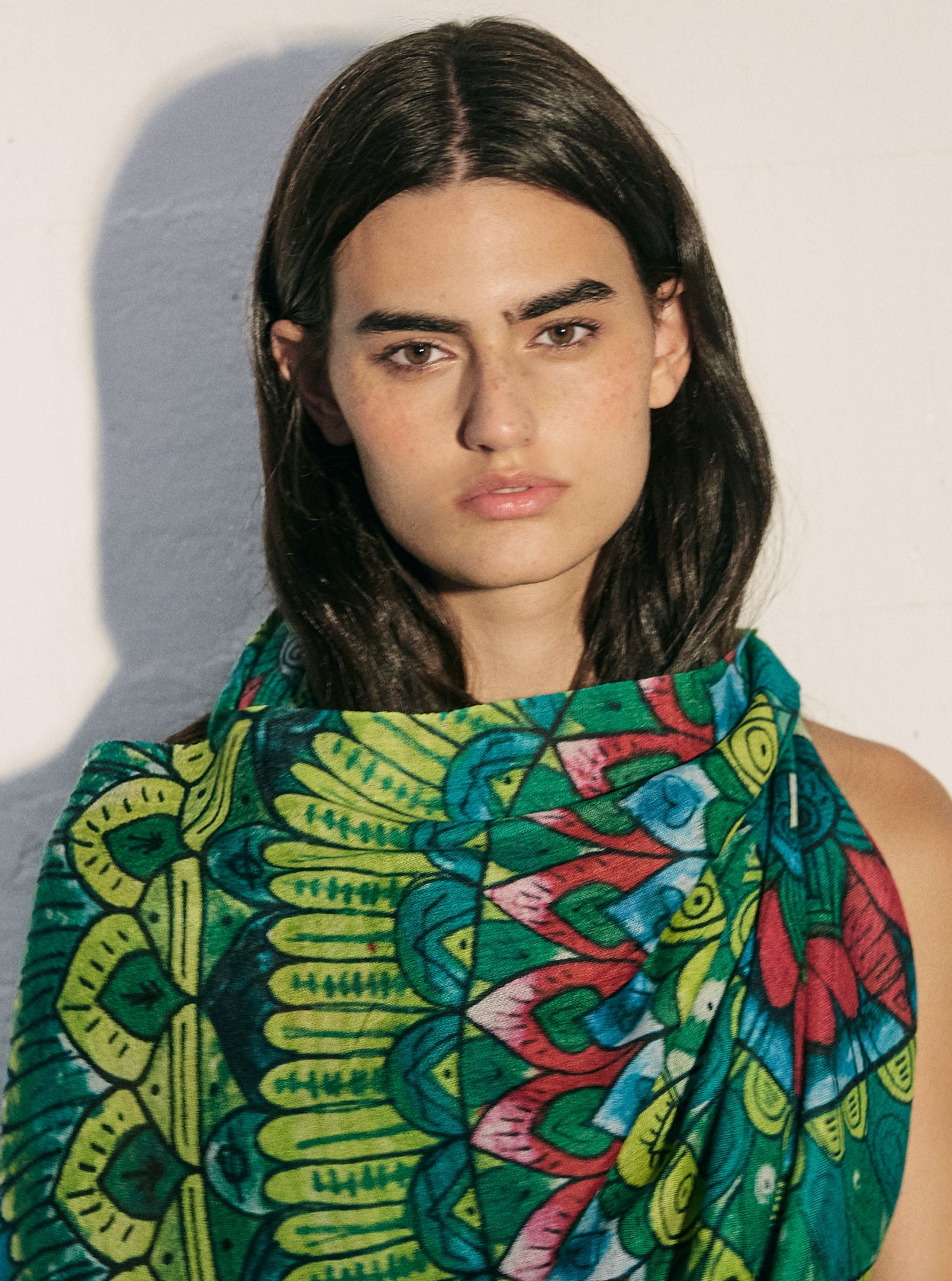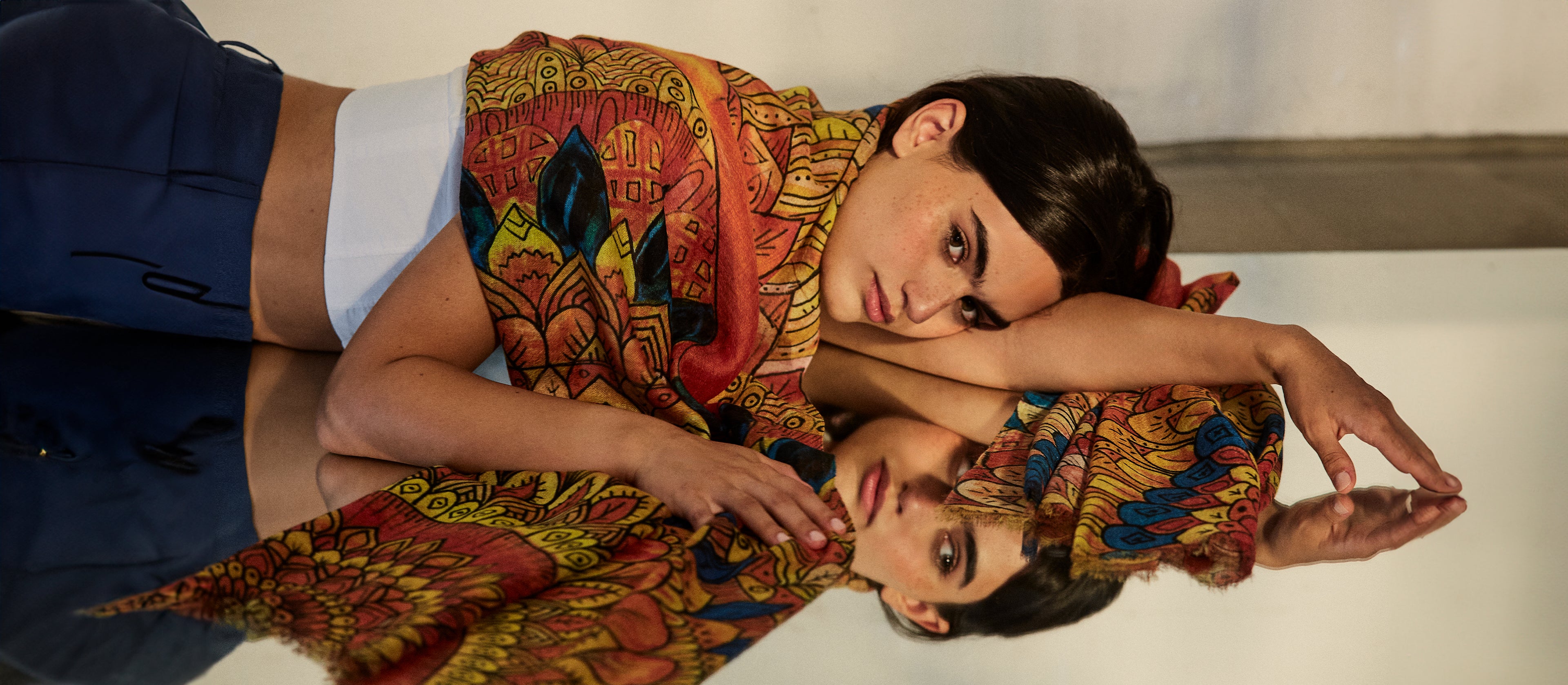 where baby alpaca stoles with silk become living canvases of Kelly Abarca's inspiration.