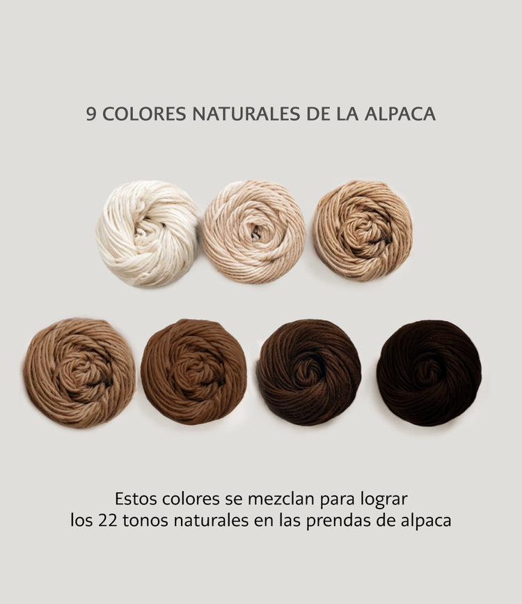 En Shades of the Andes, el color no se impone: nace de la propia esencia de la alpaca. Cada prenda revela los matices naturales de la fibra, una paleta que va desde los tonos más suaves hasta las profundidades más intensas, sin intervención de tintes ni artificios.