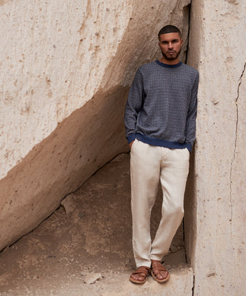 The fusion of baby alpaca, cotton, silk and linen gives this collection a unique harmony between lightness and sophistication. The garments offer an ethereal texture, achieving a perfect balance between comfort and style, allowing each piece to flow with the grace of the wind.