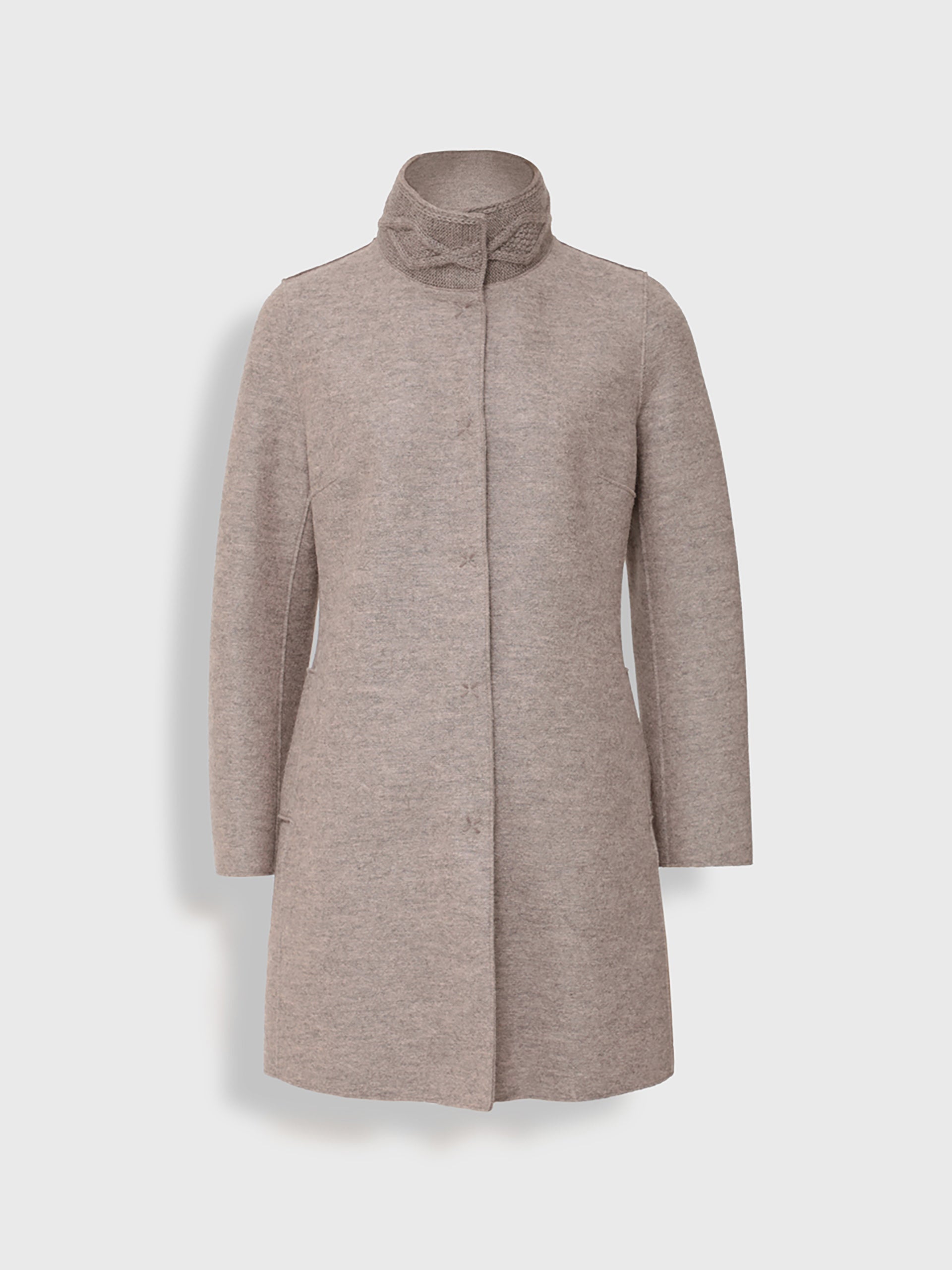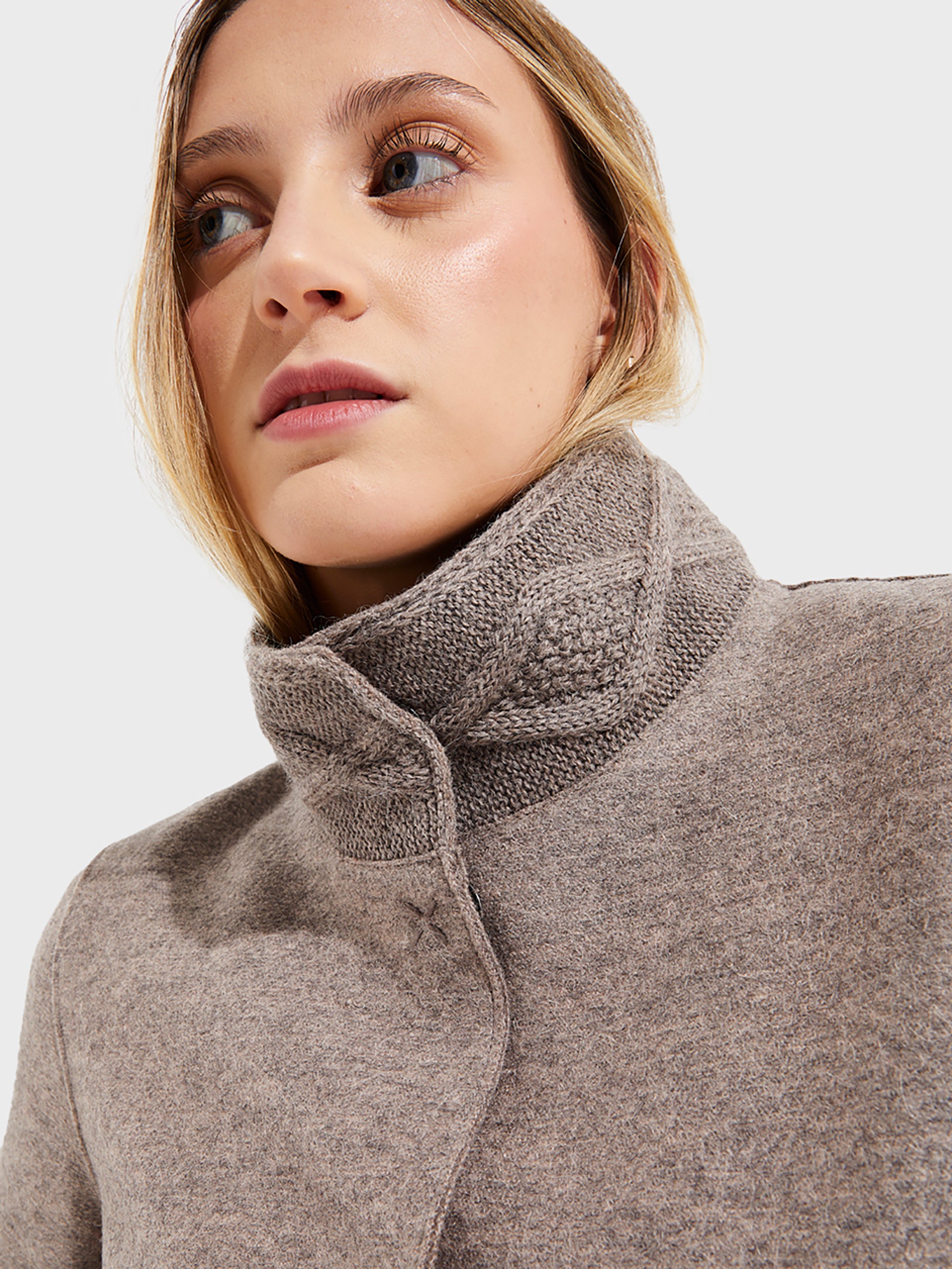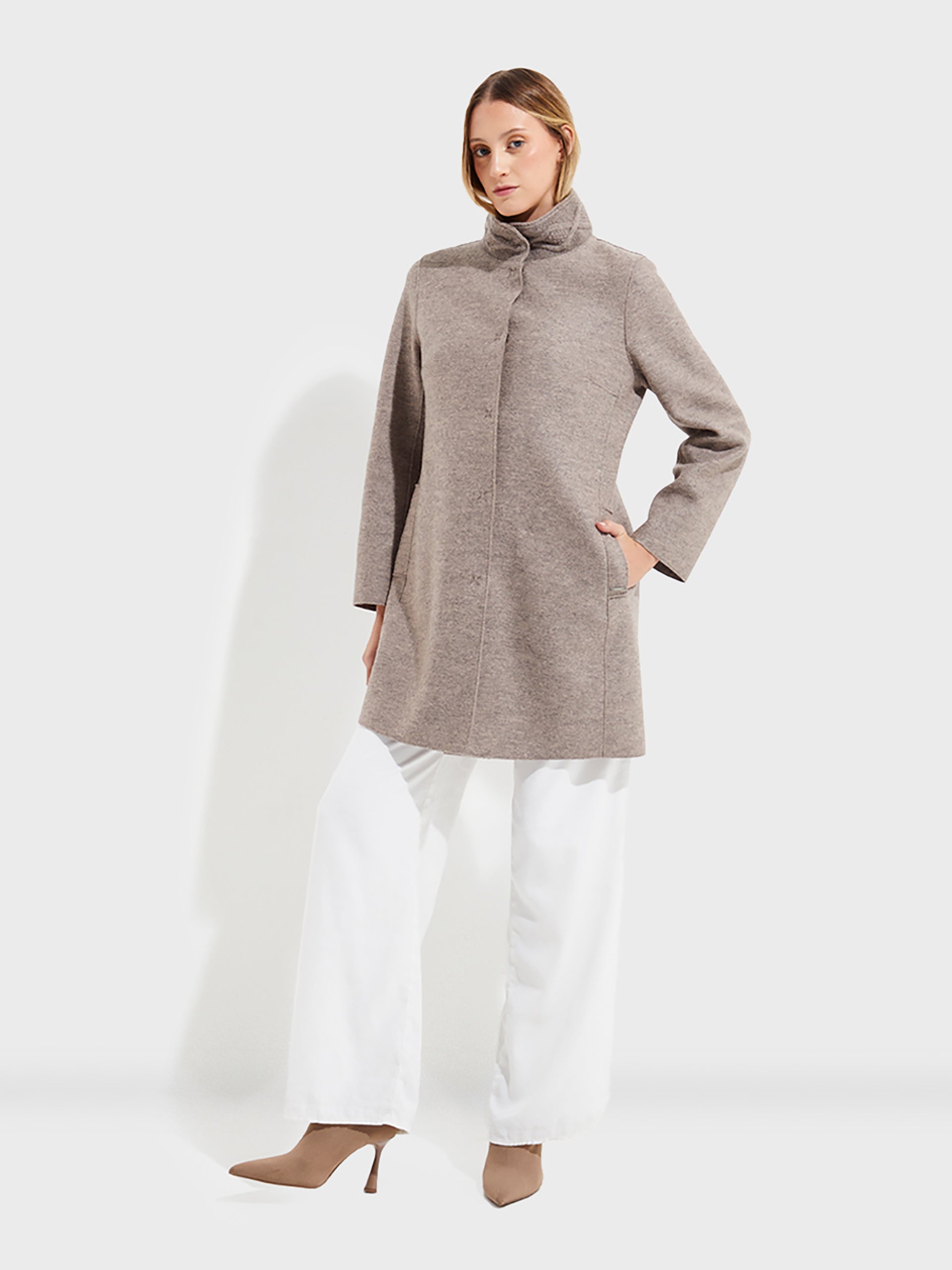 Yoko, un abrigo de elegancia inigualable con broches metálicos y delicado bordado en el cuello. Disponible en dos tonalidades versátiles, este abrigo es la elección perfecta para realzar tus looks. La tela felted, fusionando alpaca y lana, garantiza una experiencia de uso lujosa y cálida. | Material predominante: Alpaca