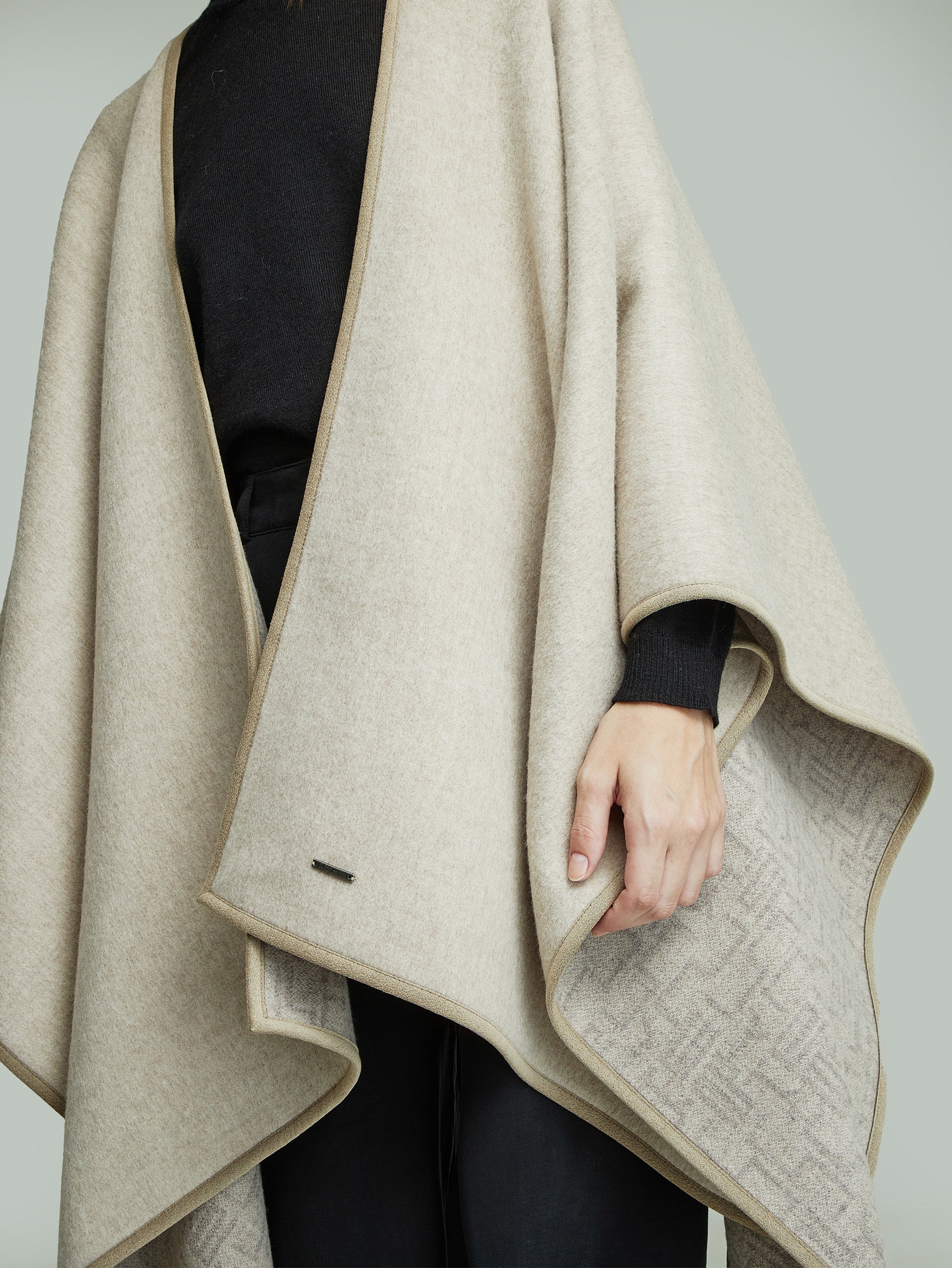 The Yper reversible cape, made of baby alpaca, wool and nylon, is soft, light and warm. Its length and loose cut allow you to wear it over other clothes comfortably. A versatile and elegant option to keep you warm and stylish this season! | Predominant material: Baby Alpaca