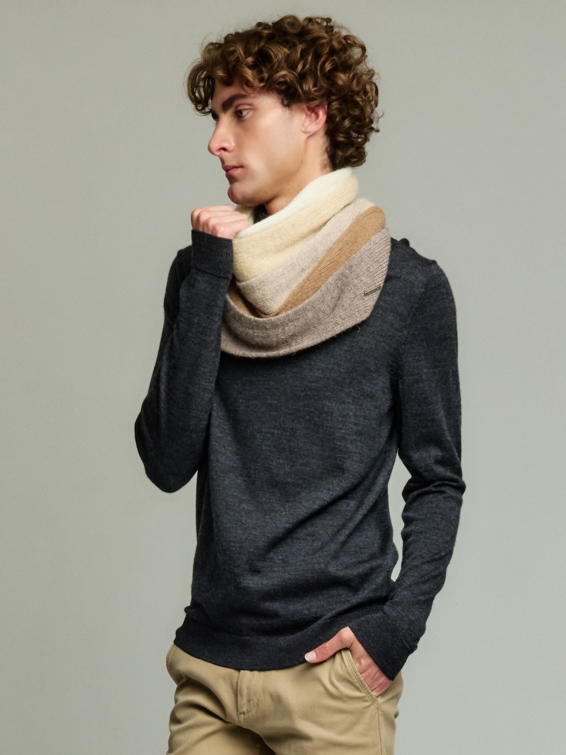 The baby alpaca scarf is a versatile and stylish accessory. With its striped design, it allows you to enjoy different styles that provide a feeling of luxury and warmth. Find it in a wide range of colors, allowing you to choose the perfect shade to complement any outfit. | Predominant material: Baby Alpaca