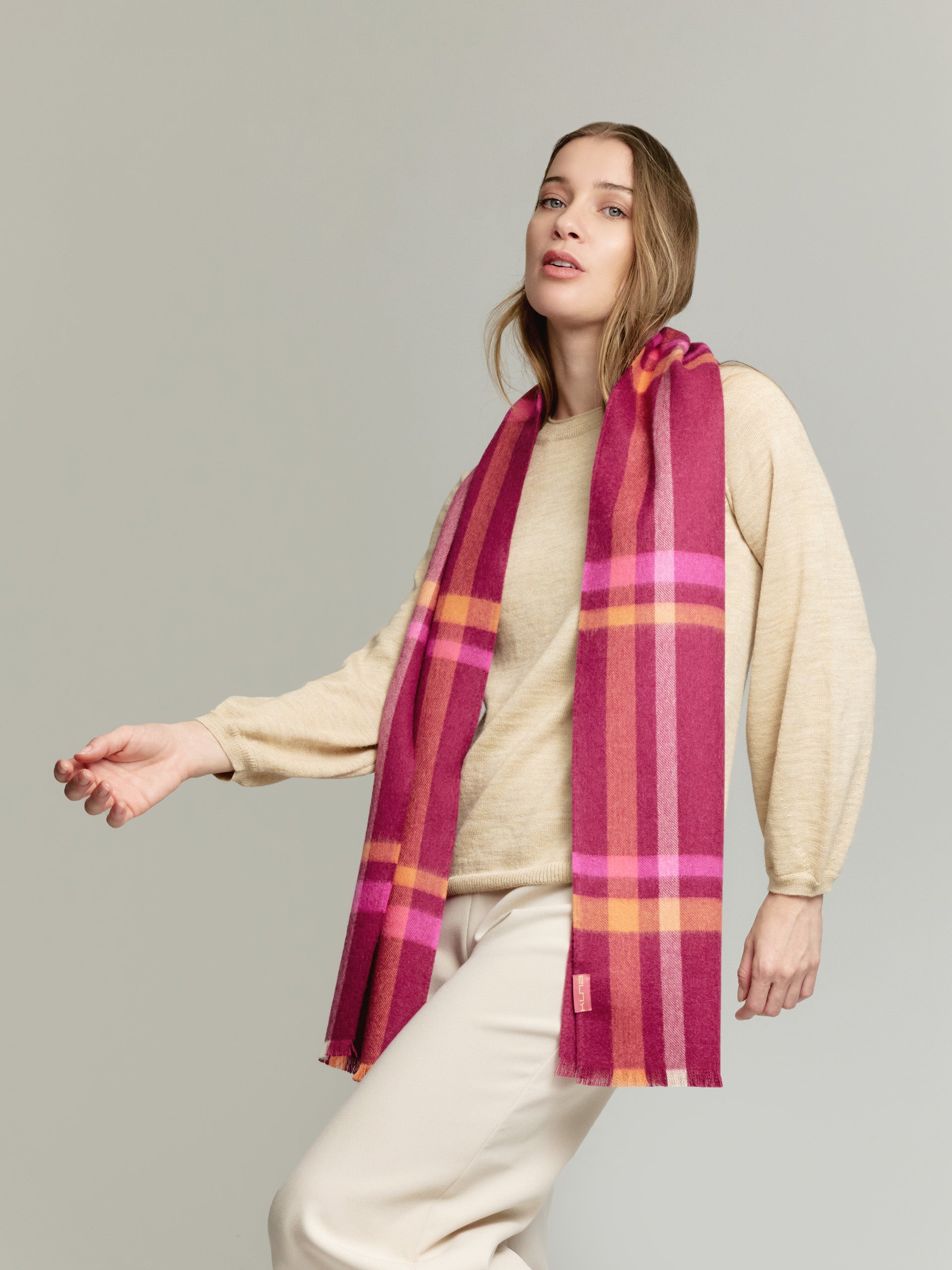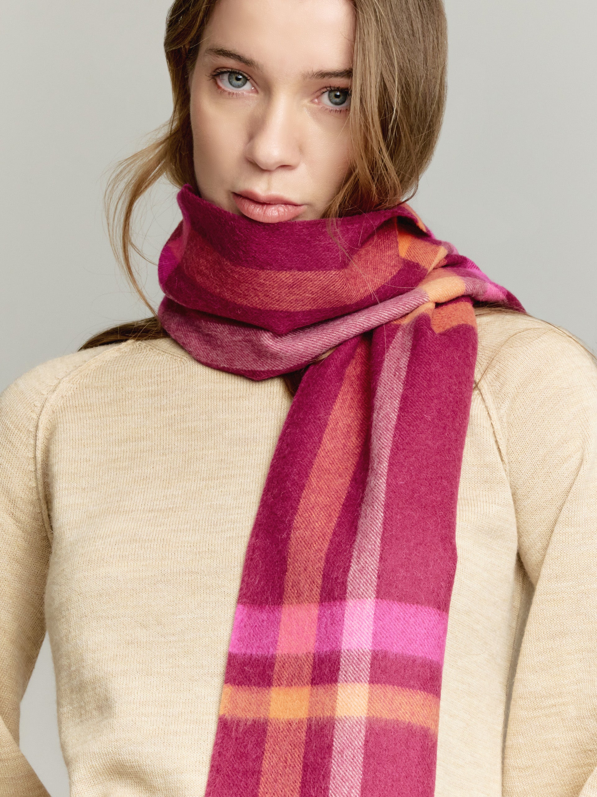 Baby Alpaca Scarf: Warm, soft and chic. Its checkered design adds a touch of elegance. Ideal for all occasions, available in three shades. It combines style and comfort to stand out in autumn and winter. Wrap yourself in luxury with this timeless garment! | Predominant material: Baby Alpaca