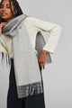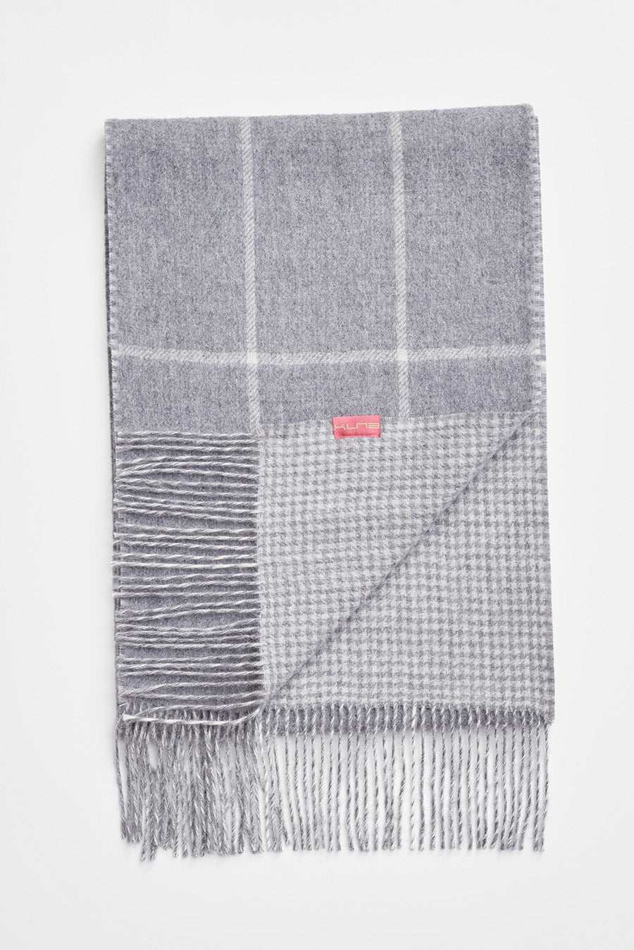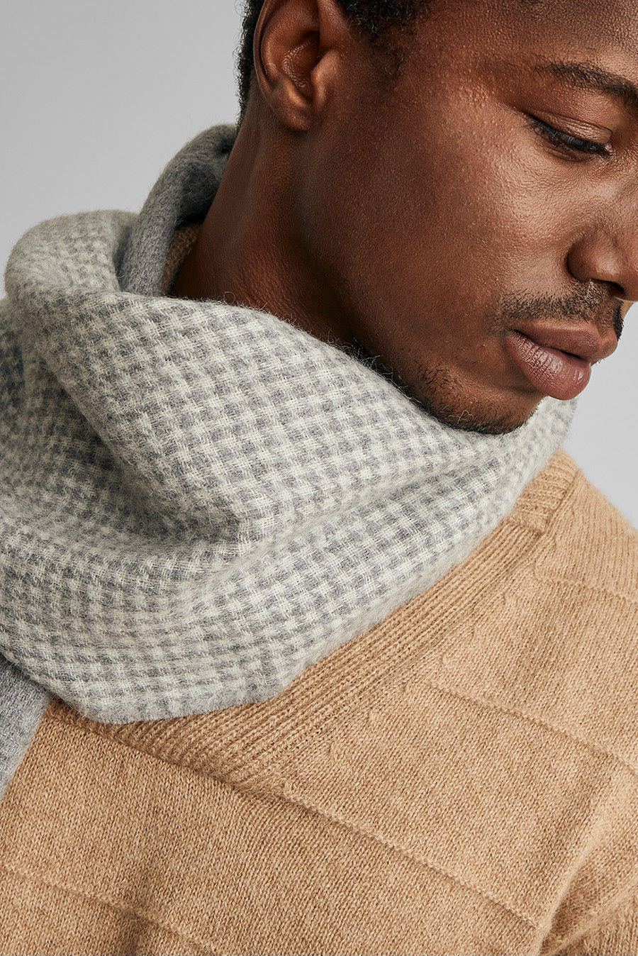 Sophisticated and soft is the Was reversible scarf in baby alpaca and with fringes. A versatile accessory with a checkered design that cannot be missing from your wardrobe. Find it in 3 warm tones. | Predominant material: Baby Alpaca