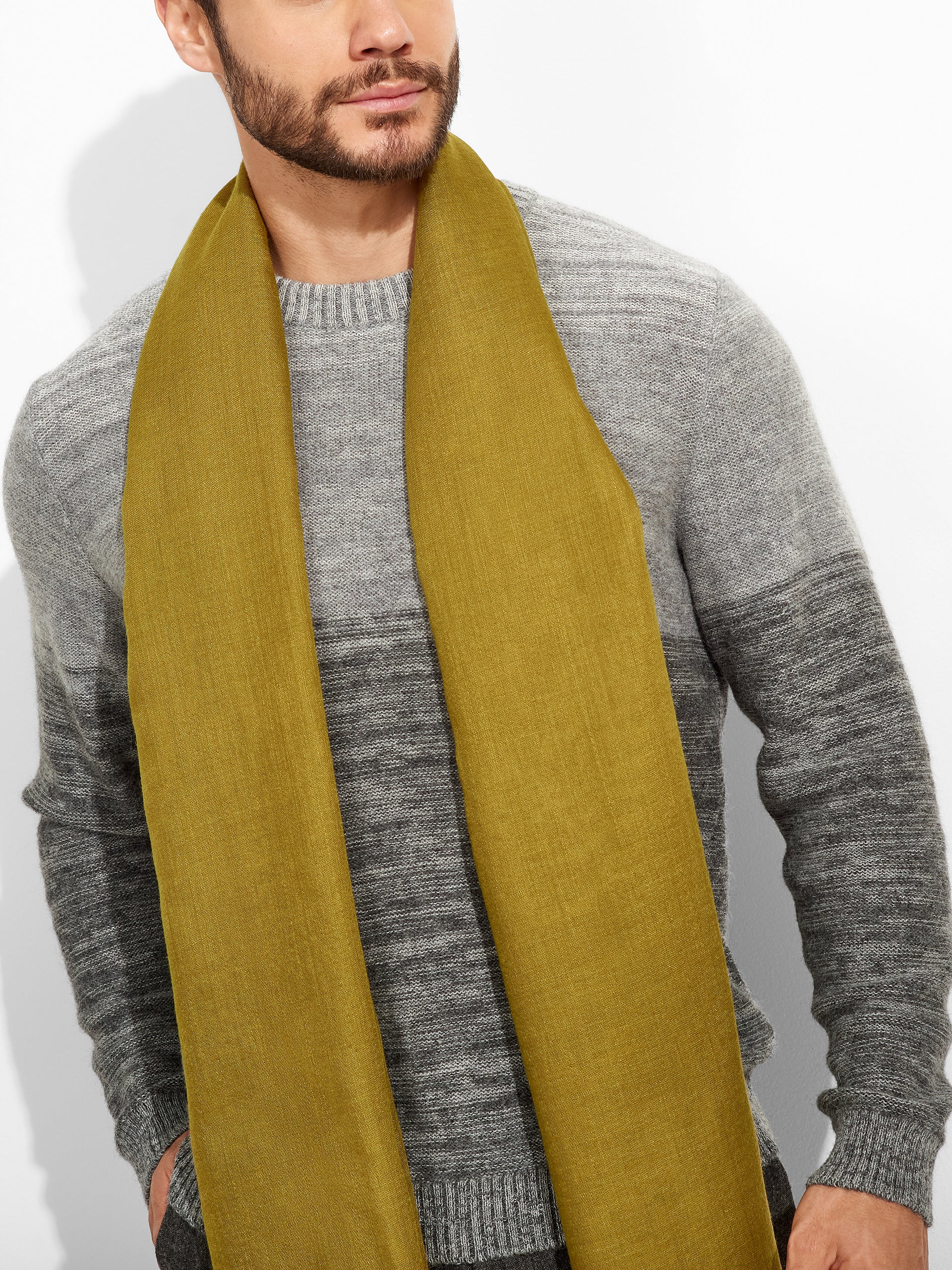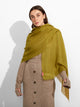 Estola Alondra en tonalidad verde, de color entero, presenta bordes con flecos finos. Confeccionada en baby alpaca y seda, combina ligereza y suavidad. | Material predominante: Baby Alpaca