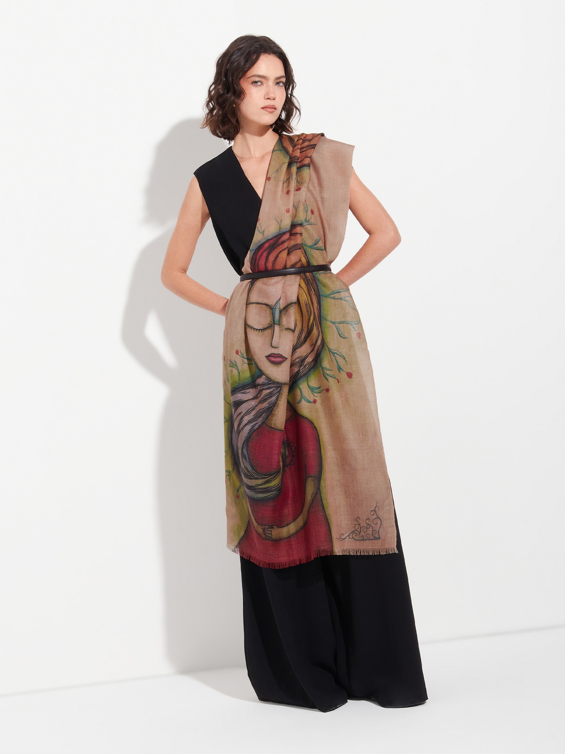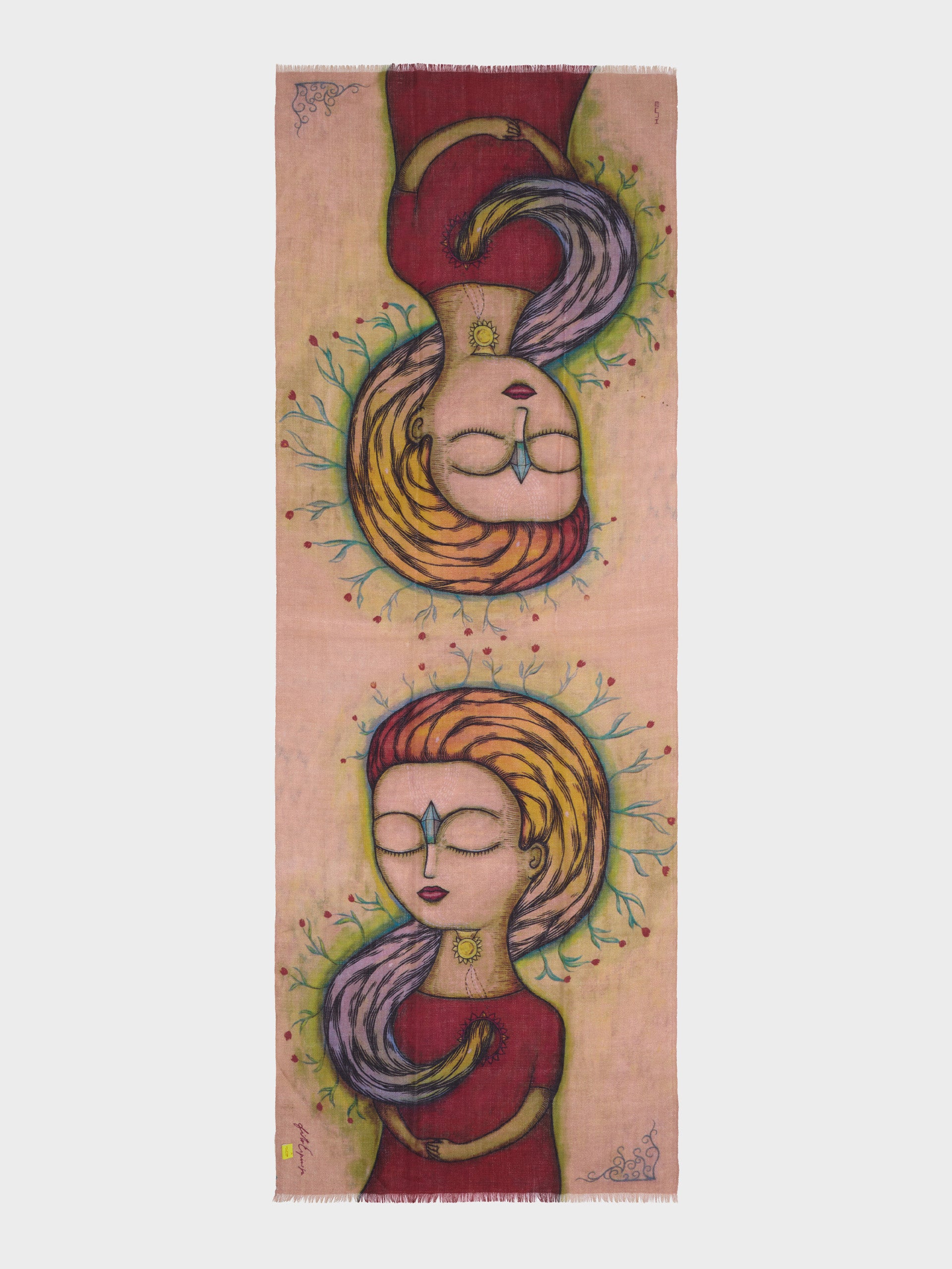 Mente y corazón son los polos por los que la energía infinita fluye, permitiendo la conexión con las diferentes dimensiones del ser, en este estado especial de unidad y presencia. Esta sublime estola ha sido inspiración de nuestro artista Fito Espinoza, elaborada en baby alpaca y seda. | Material predominante: Baby Alpaca