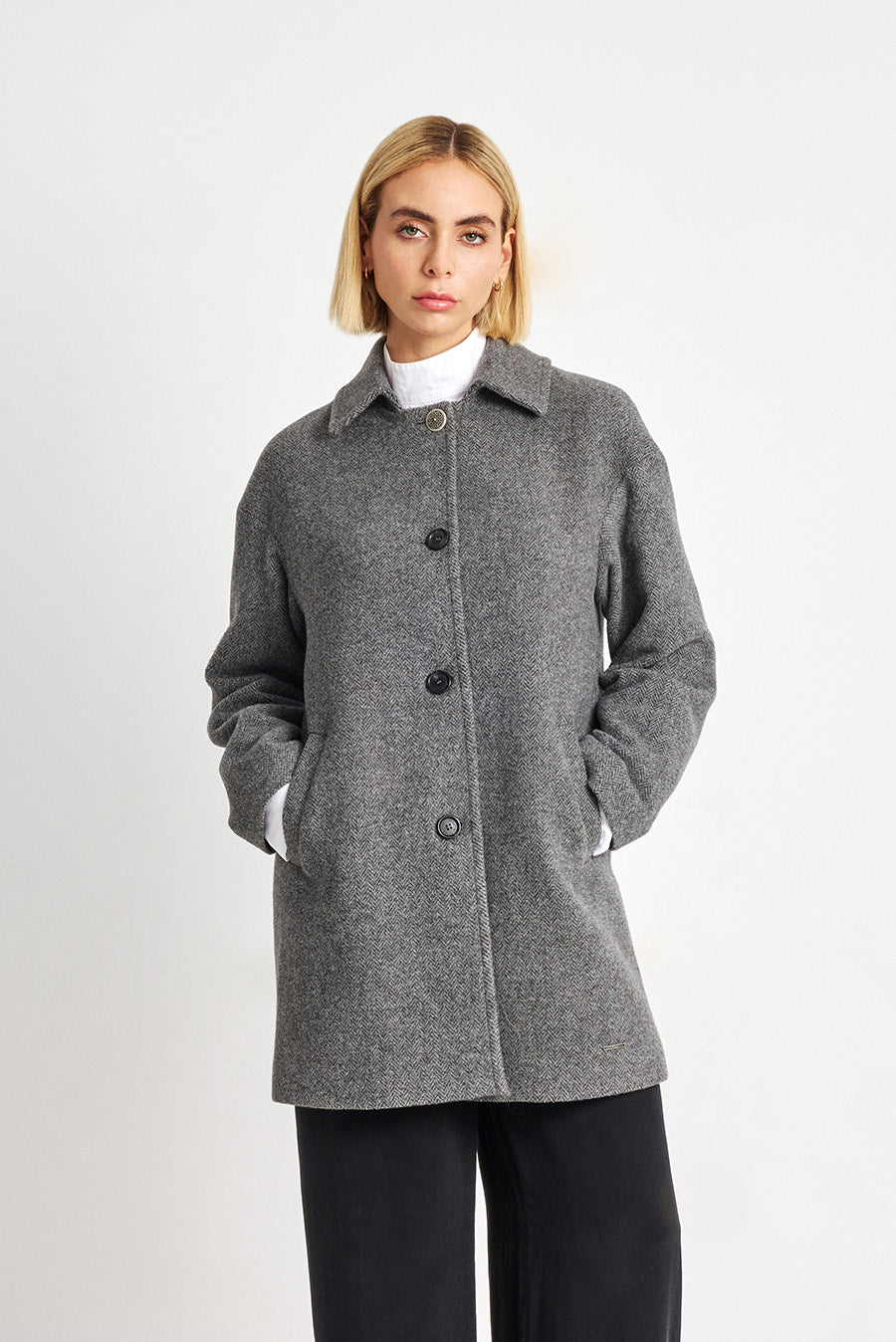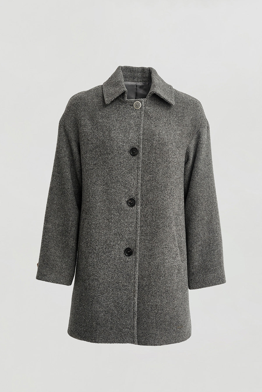 Exceptional garment made from baby alpaca, wool and nylon, which grants special enhancement to our Windy coat. A garment with an elegant and distinctive cut.