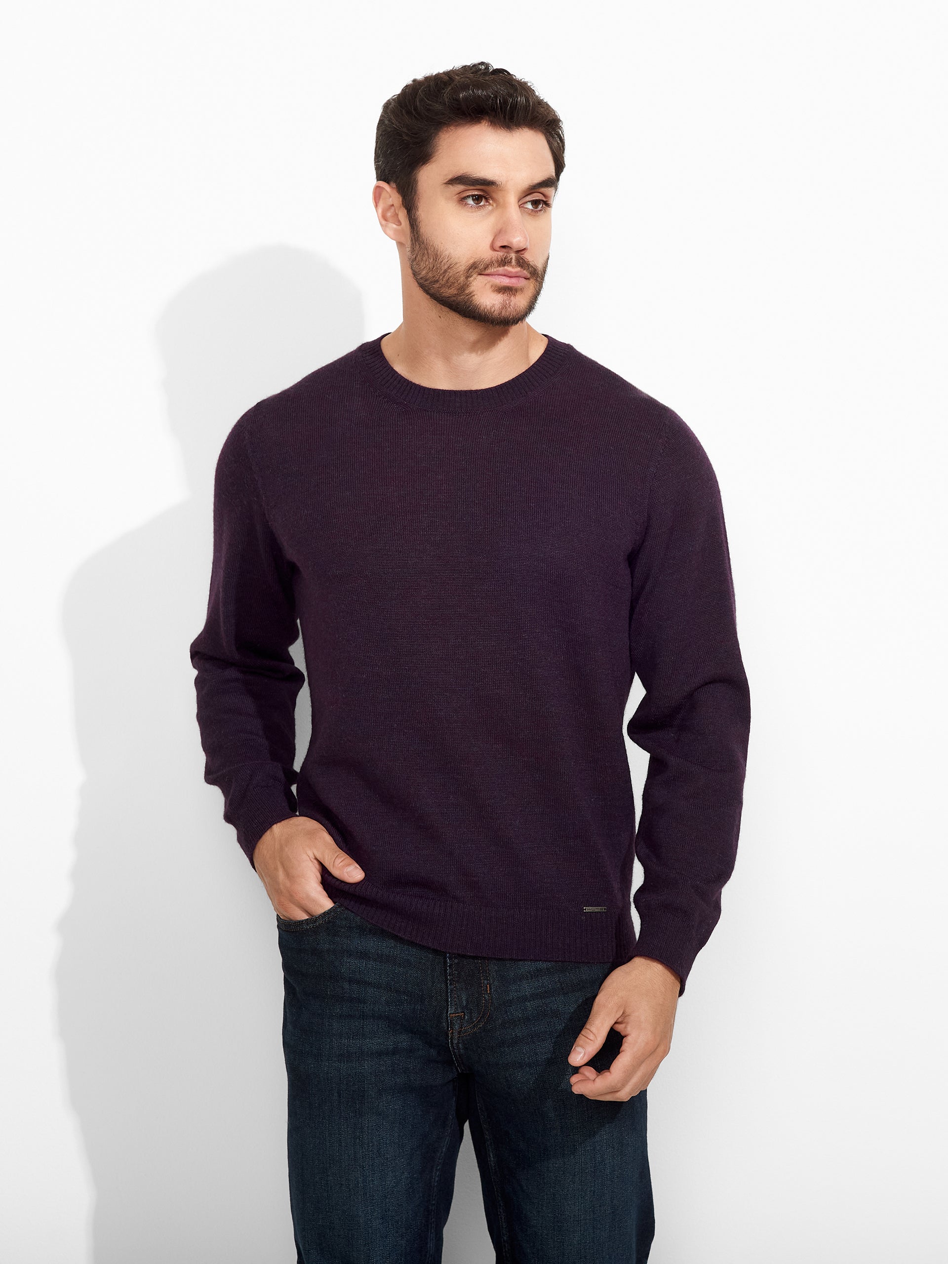 Suéter Alaska en tonalidad morado, diseñado en color entero con cuello redondo. Tejido suave y cálido. Confeccionado en baby alpaca, brinda calidez y suavidad.
