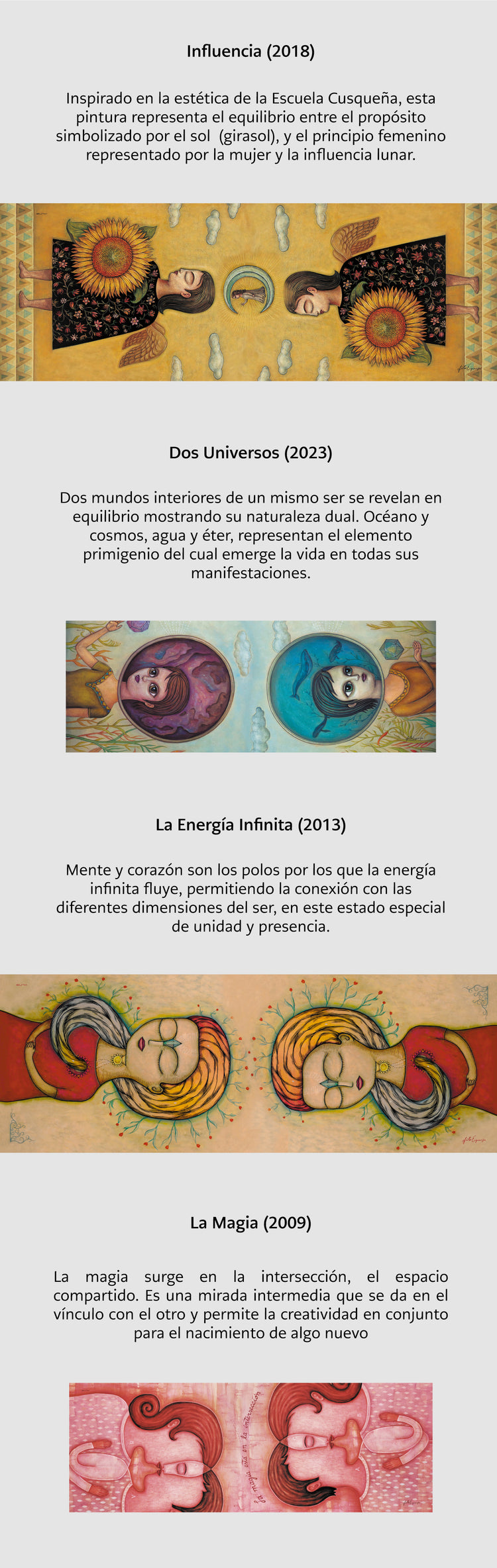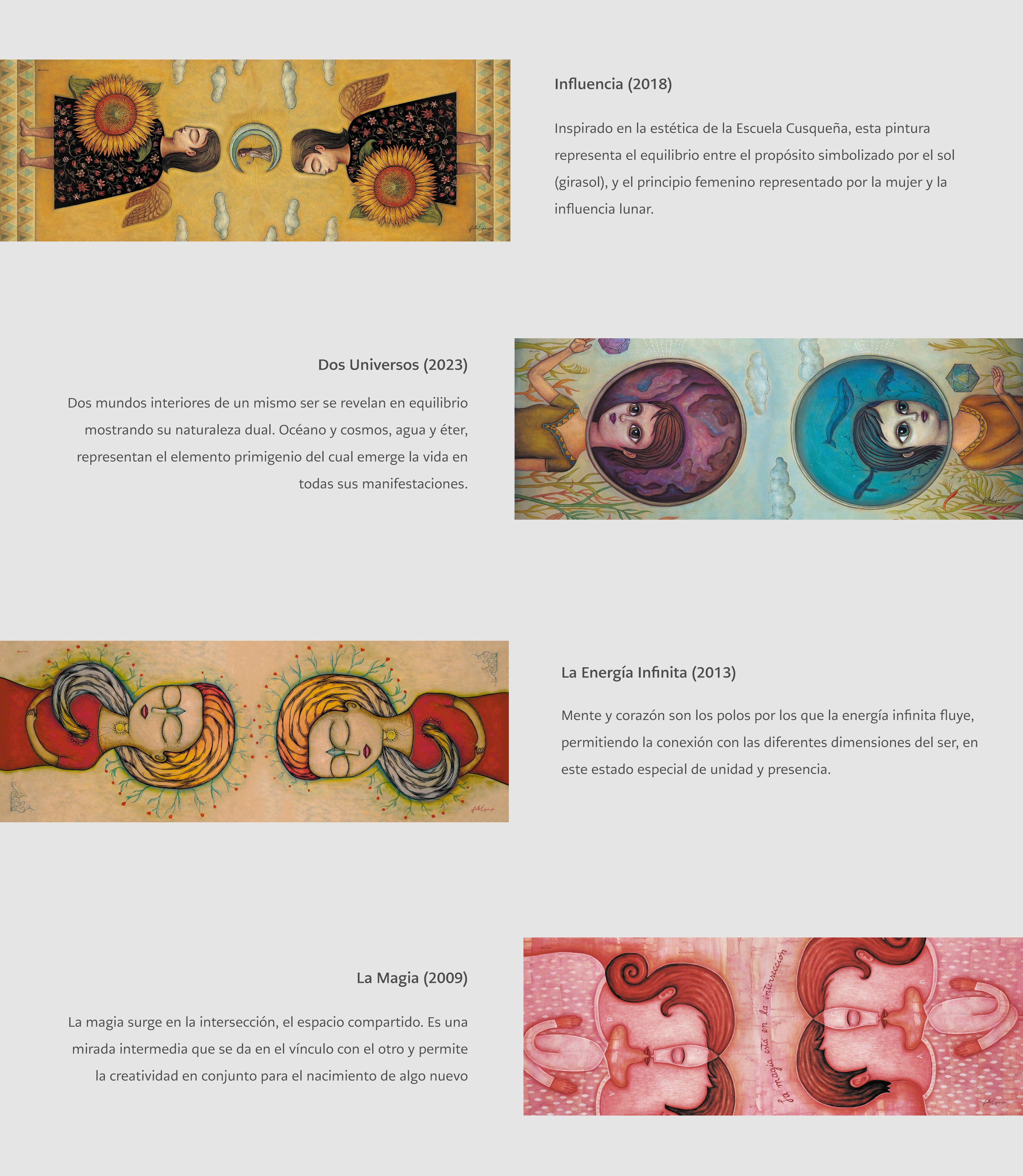 Artista plástico peruano de reconocida trayectoria, Fito Espinosa ha construido a lo largo de los años un universo visual donde la inocencia y la profundidad conviven. Su obra, de estilo poético y simbólico, combina delicadeza estética con una mirada filosófica sobre la vida, explorando las emociones y la esencia del ser humano.
