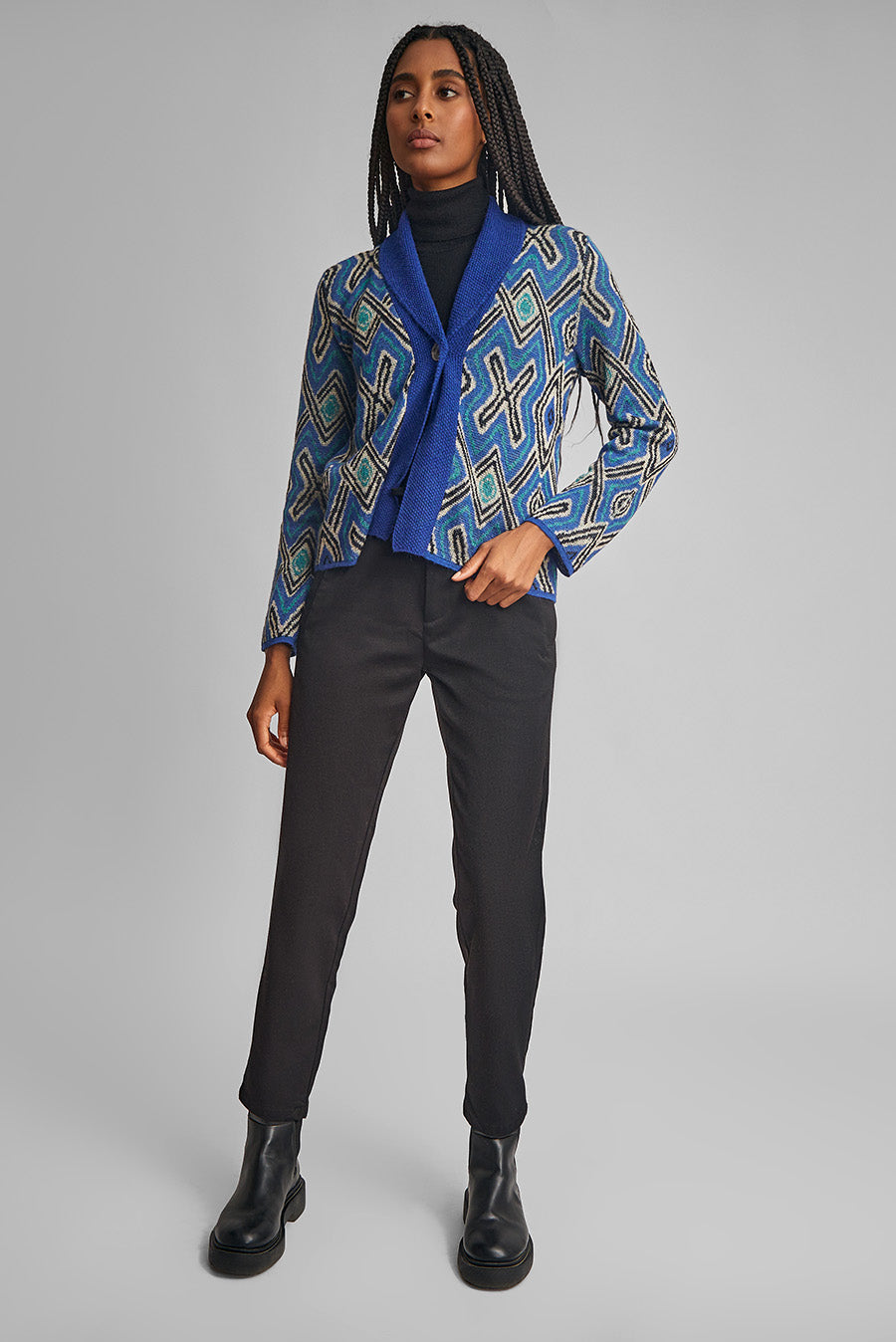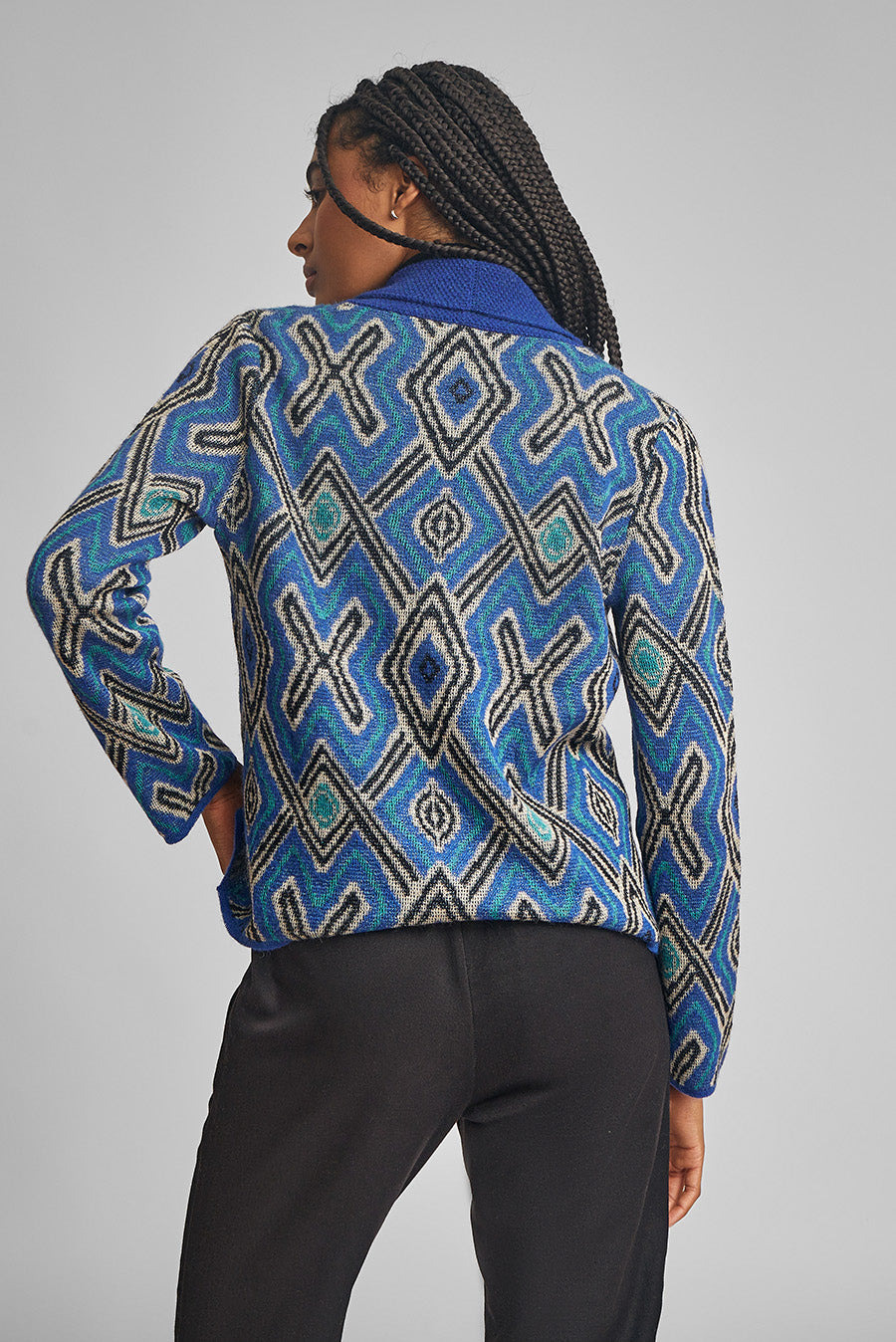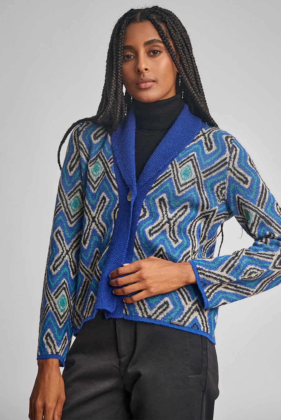 Delicada prenda, con gran movimiento, inspirada en diseño AFROPERU. Nuestro cardigan Wakosky es una de las prendas mas vistosas e importantes de esta nueva colección. | Material predominante: Baby Alpaca