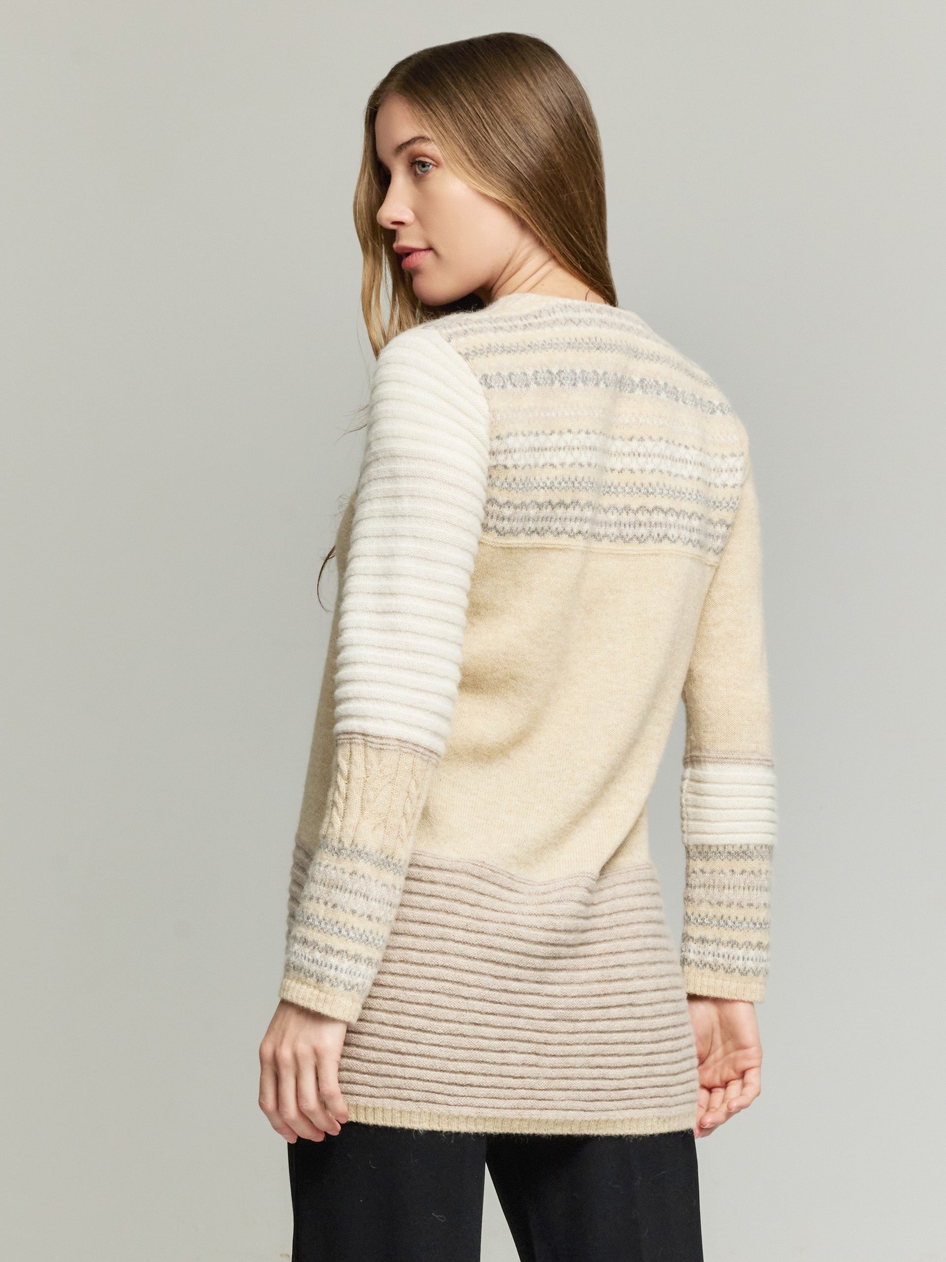 Confeccionado en nuestro punto especial, rico en texturas y tonos agradables, este cárdigan es la alternativa perfecta para un look casual sin sacrificar la elegancia. Elaborado en 100% baby alpaca, esta hermosa prenda te cautivará con su seductora silueta y suave tacto. Envuélvete en la comodidad y el estilo con nuestro cárdigan Ysadora. | Material predominante: Baby Alpaca