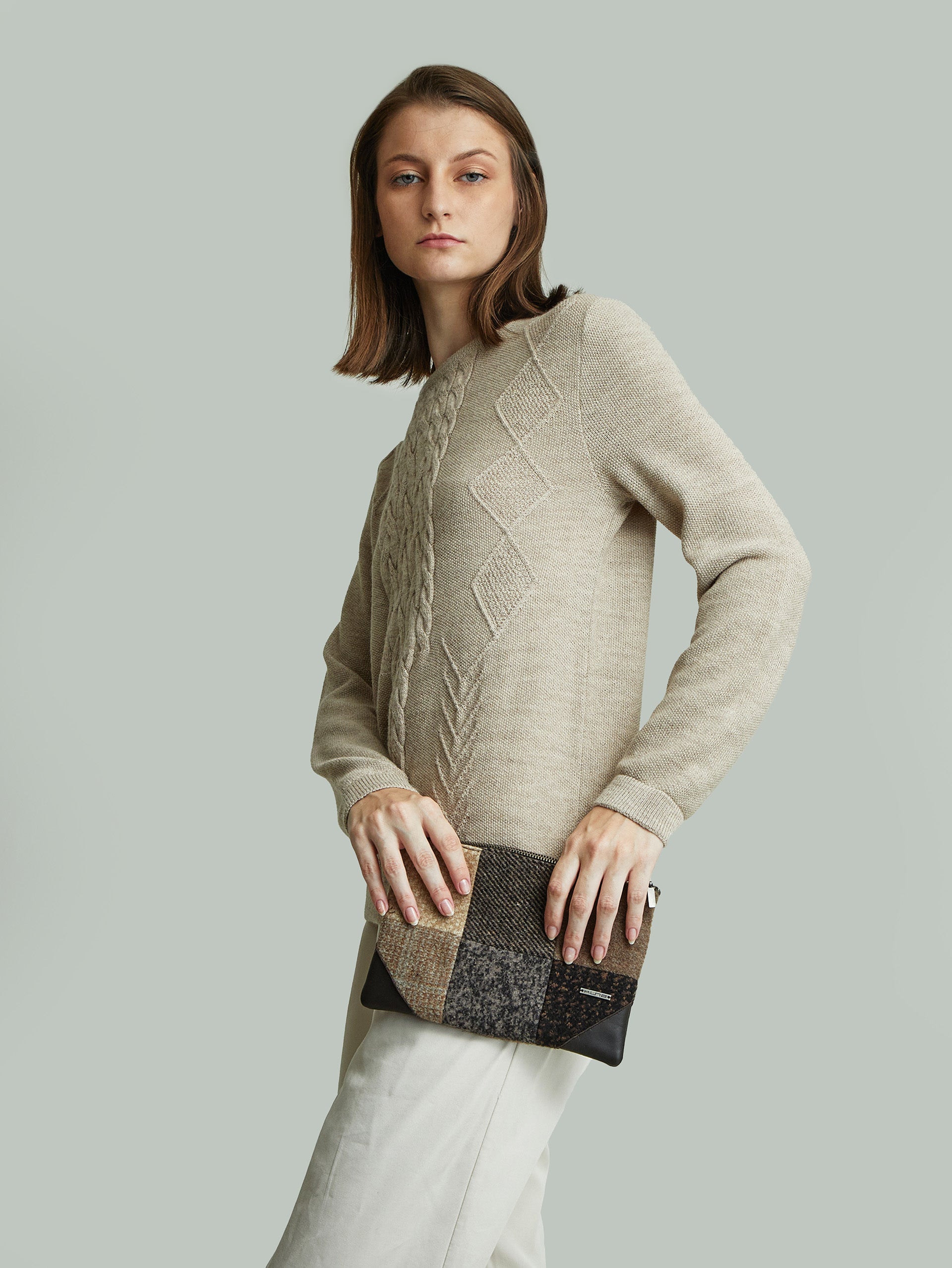 Cartera Clutch Patchwork De Alpaca Y Lana Color Marron