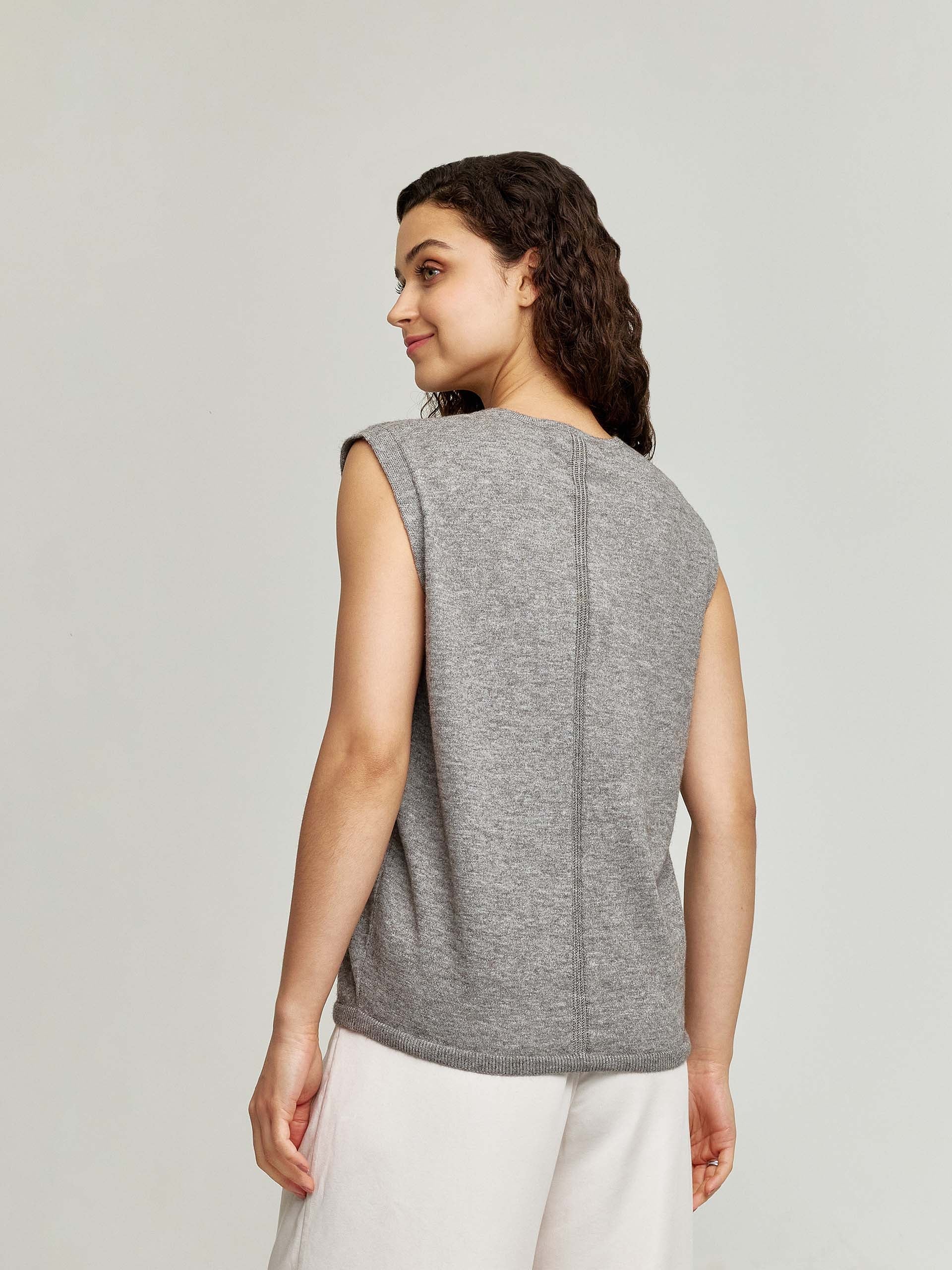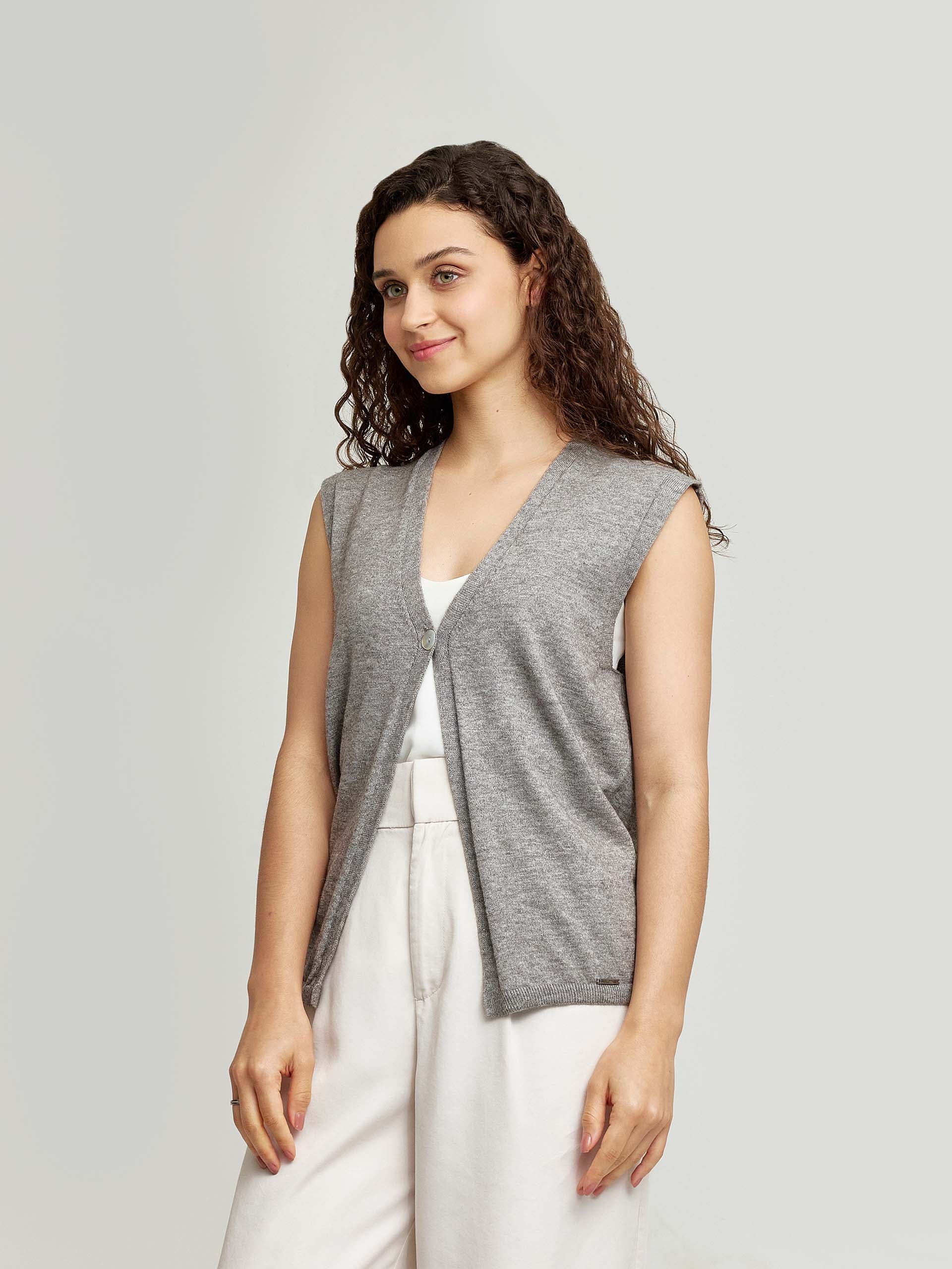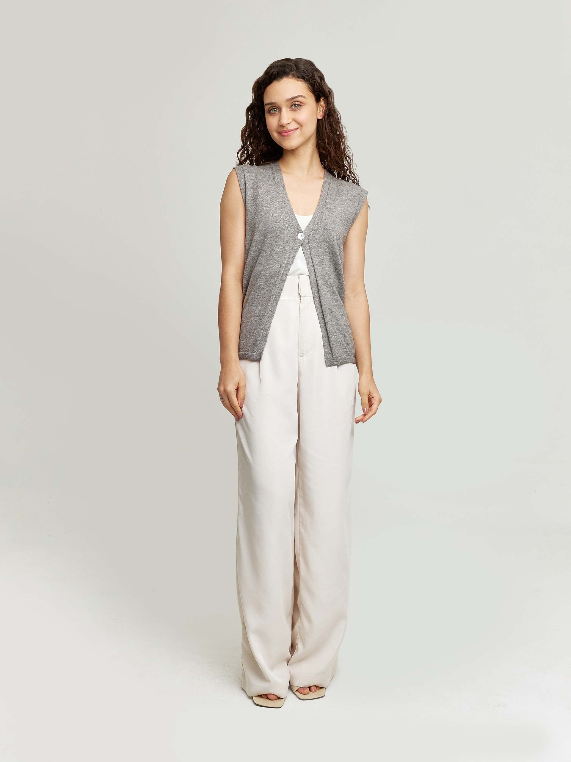 Este chaleco está tejido en algodón orgánico y baby alpaca, una combinación extremadamente suave. Sin mangas, corte ligeramente entallado y un escote en V que estiliza el cuello. Encuentra nuestro hermoso y fresco chaleco Waterdrop en dos cálidos colores. | Material predominante: Algodón & Baby Alpaca