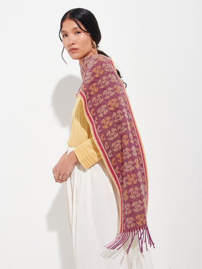 Chalina Chancay 36 en tonalidad fucsia, elaborada en 100% baby alpaca con técnica Jacquard en doble cara. Con una medida de 180/164 x 25 cm, está inspirada en la Cultura Chancay. Accesorio unisex, que conecta con la memoria ancestral a través de un diseño auténticamente cultural. | Material predominante: Baby Alpaca