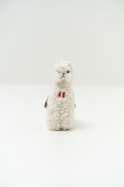 Q'oni es una tierna alpaquita inspirada en la alpaca Huacaya de los Andes peruanos. Una creación cuidadosamente elaborada que busca capturar la ternura y suavidad de las alpacas. Está hecha con fibra de baby alpaca lo que la hace muy suave y tierna. Altura: 11 cm. | Material predominante: Baby Alpaca